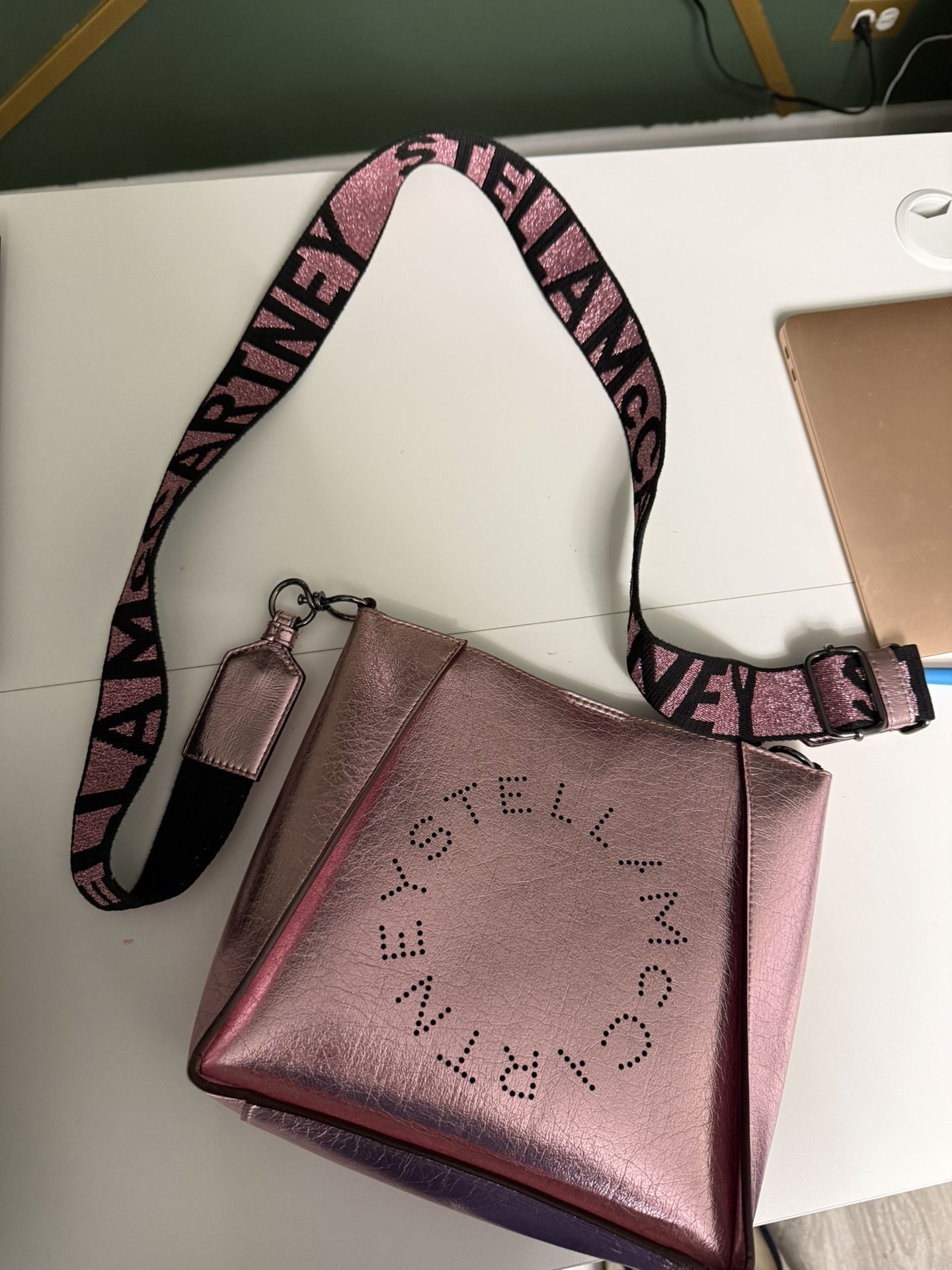 Stella McCartney Stella McCartney Pink Metallic Faux Leather Stella Logo Crossbody Bag