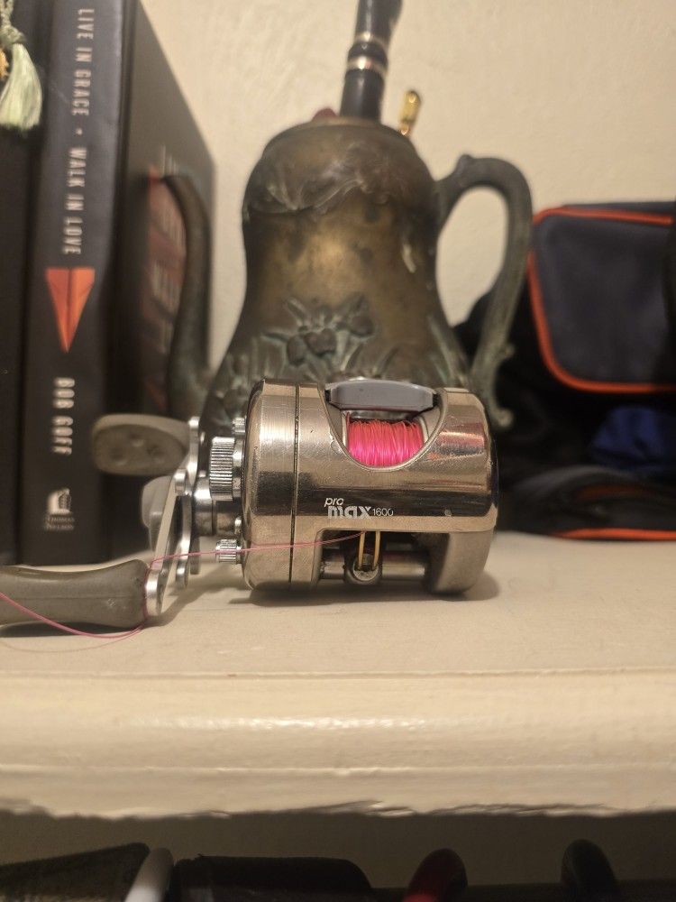 Abu Garcia Ambassadeur Pro Max 1600 fishing reel. Just need to good cleaning. bearings are good . has a few nicks on top as shown on photos, but reel works 100%