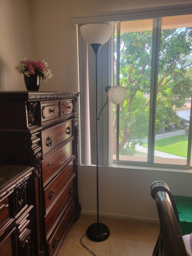 Black Combo Floor Lamp With Reading Lamp, Modern Design