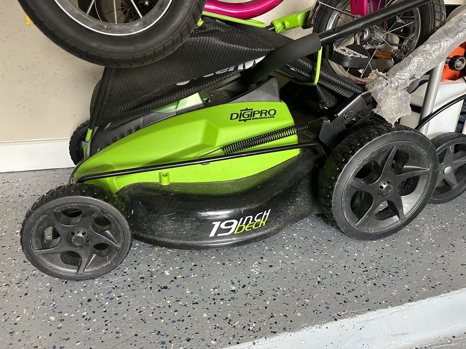 Green works 19’ mower . It comes with battery & charger . OBO ! Hablo español