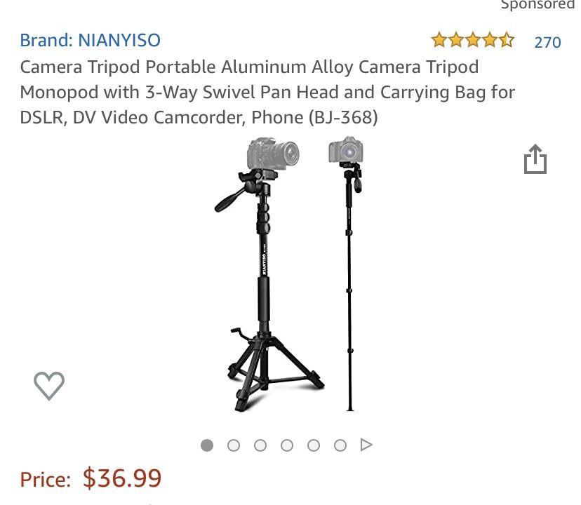 Camera Tripod Portable Aluminum Alloy Camera Tripod Monopod with 3-Way Swivel Pan Head and Carrying Bag for DSLR, DV Video Camcorder, Phone (BJ-368)