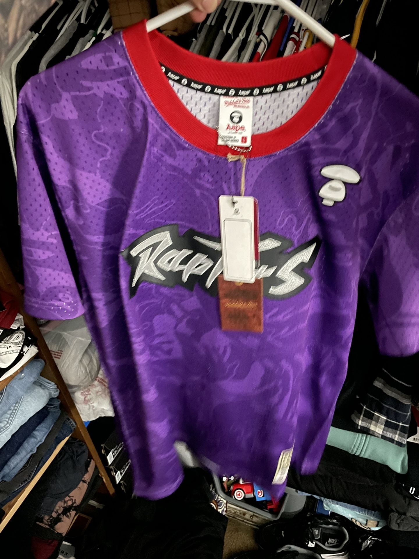 AAPE X MITCHELL & NESS RAPTORS MESH JERSEY Size : Large Toronto Raptors New Michael Jordan Lebron James Steph Curry Nike Adidas Chicago Bulls Lakers 49ers Raiders NBA Aape Bape A Bathing Aape