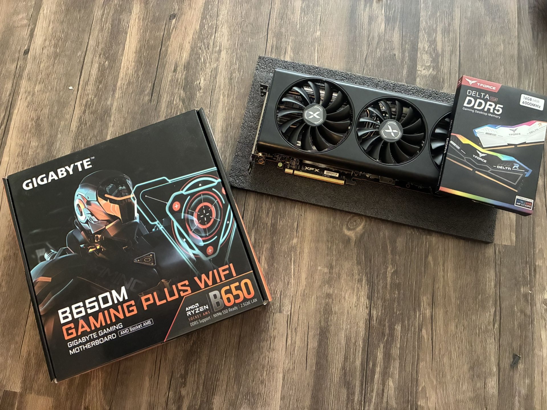 AMD 7700x CPU, RX 6800 GPU, 16GB DDR5 6000mhz Ram, AMD AM5 Gigabyte Motherboard