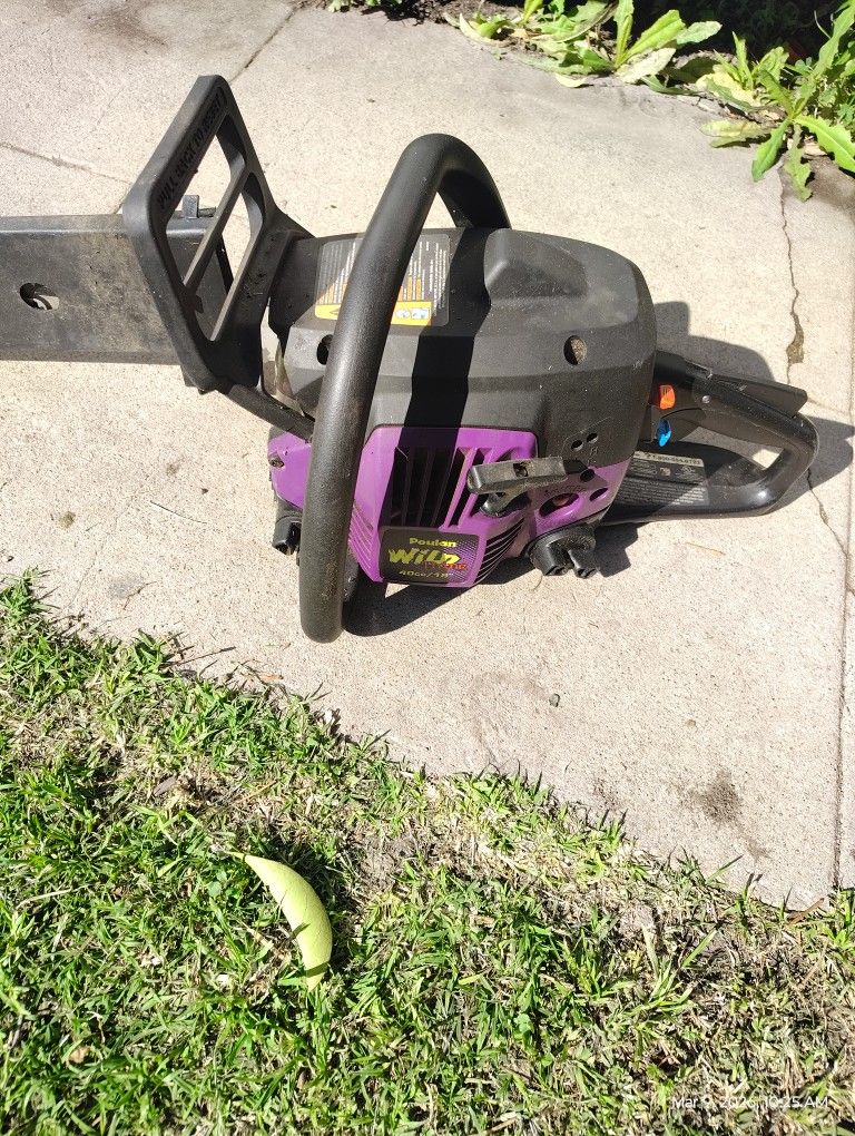 Poland 18-in chainsaw have it started it in 7 mi one gas line started a leak so it's going to need gas line and the clutch replaced I checked it online it's like from 12 bucks to 20 bucks for the clutch not too hard to change 50 bucks or best offer for chainsaw low bars will be a Nord and blocked $50 or best offer You can try to start it it's been 6 or 7 months since I started it like I said had small gas leak and clutch needs replaced it's a nice saw sounds good when it runs