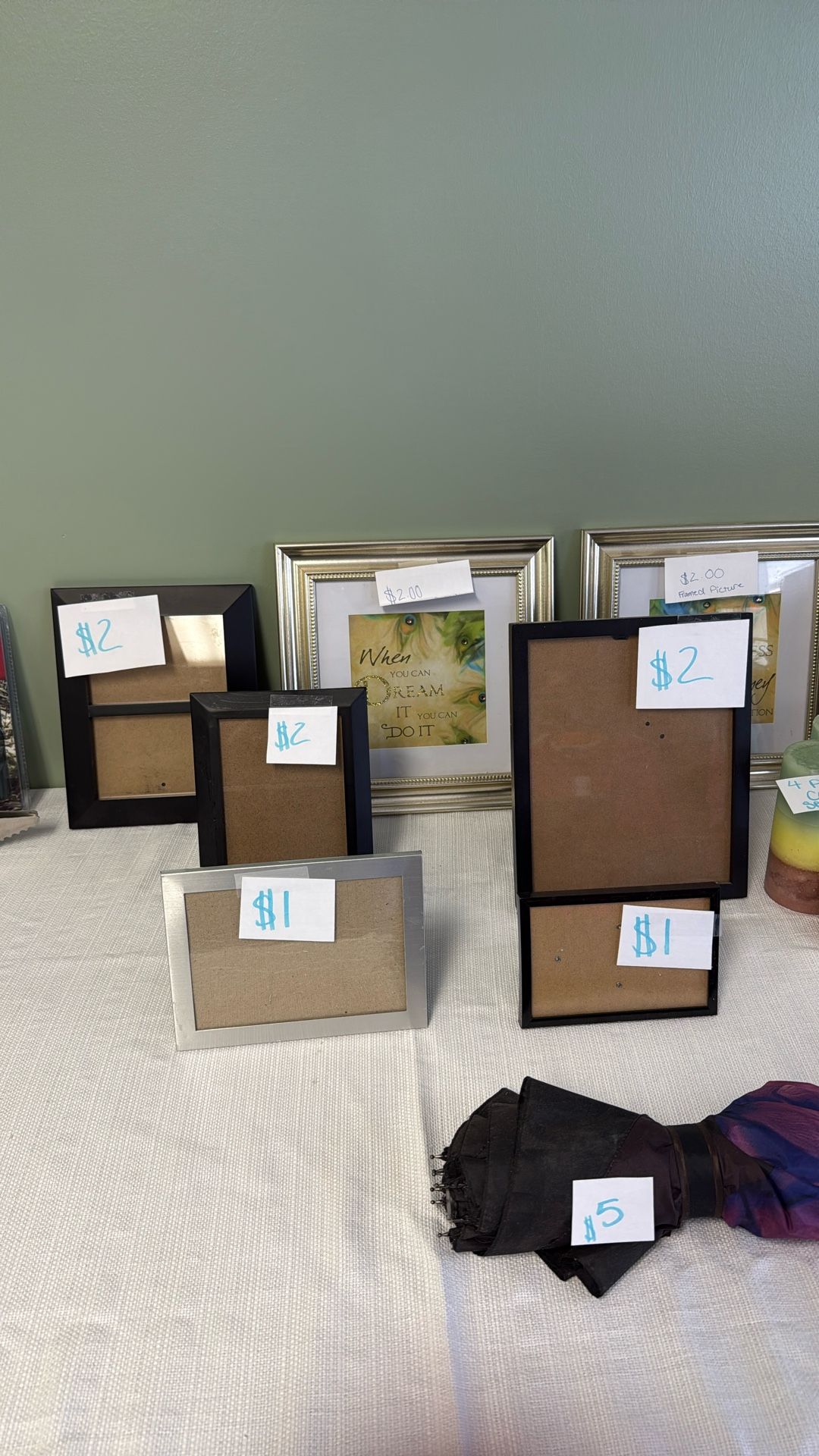 Assorted sizes picture frames 1-2$ a piece. Pick up only at local consignment store.