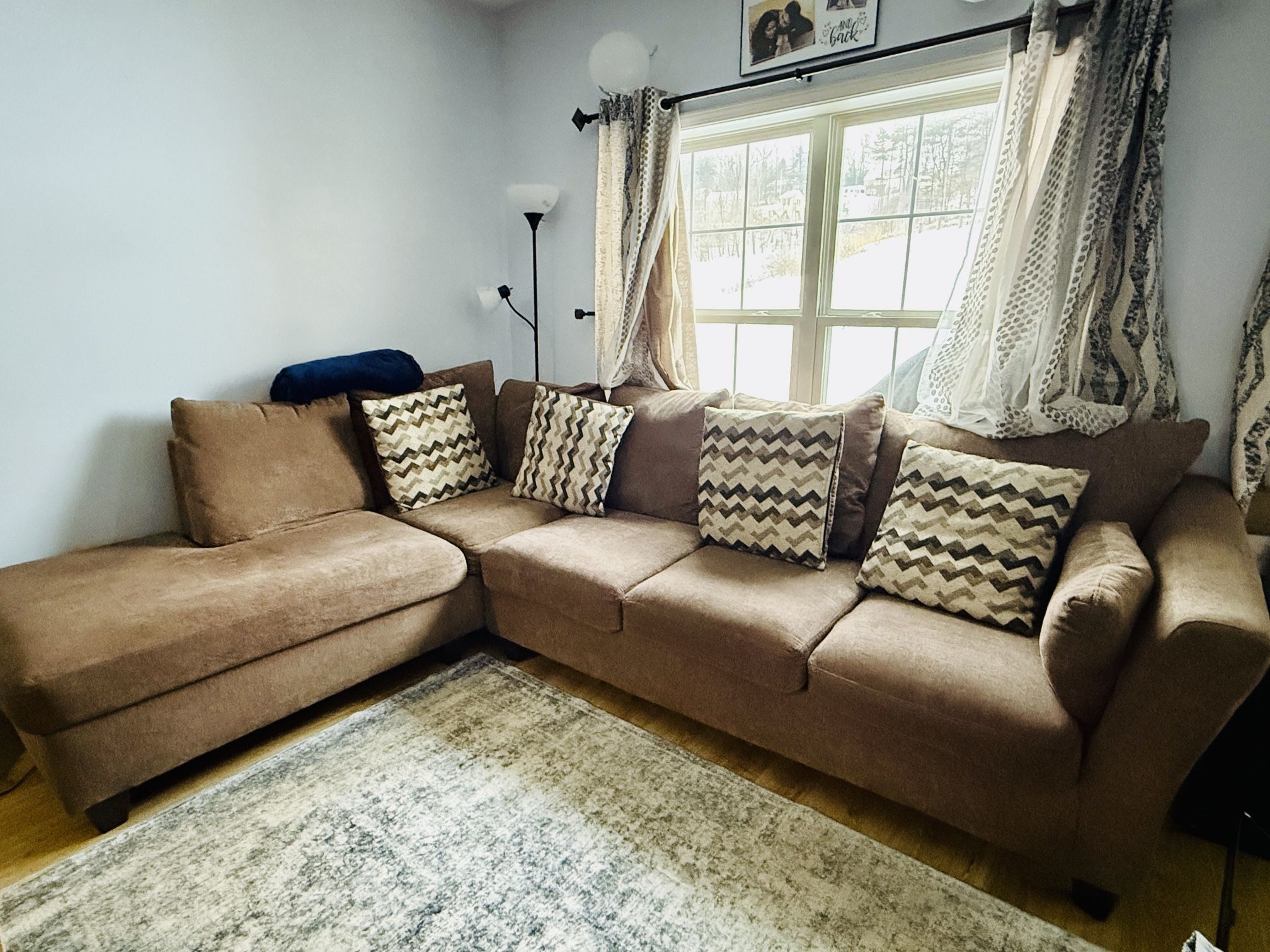 Selling our L-shaped sectional couch from Bob’s Furniture, need this sold soon. It’s a solid, comfortable couch with plenty of seating—perfect for a living room, apartment, or family space. It has Goof poof warranty until 11/4/2026 ✅ Sturdy frame, no structural issues ✅ Comfortable cushions with good support ✅ Classic neutral style that fits most décor ✅ Clean, smoke-free home Normal wear consistent with age (no major stains or tears) This couch has plenty of life left and is great if you’re looking for a quality sectional at a fraction of the original price. 💰 Priced to sell – reasonable offers welcome Message me if you’re interested or want to see it in person.
