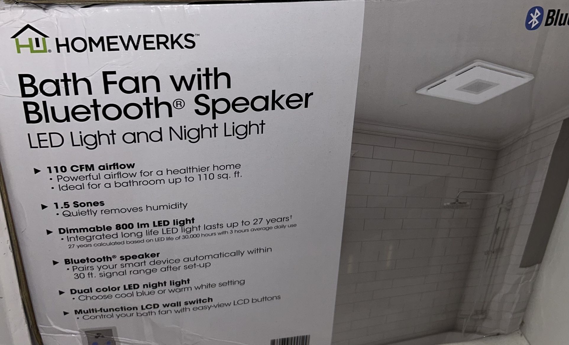 Homewerks 1.5-some 110-cfm White Decorative Lighted Bluetooth Compatibility Bathroom Fan