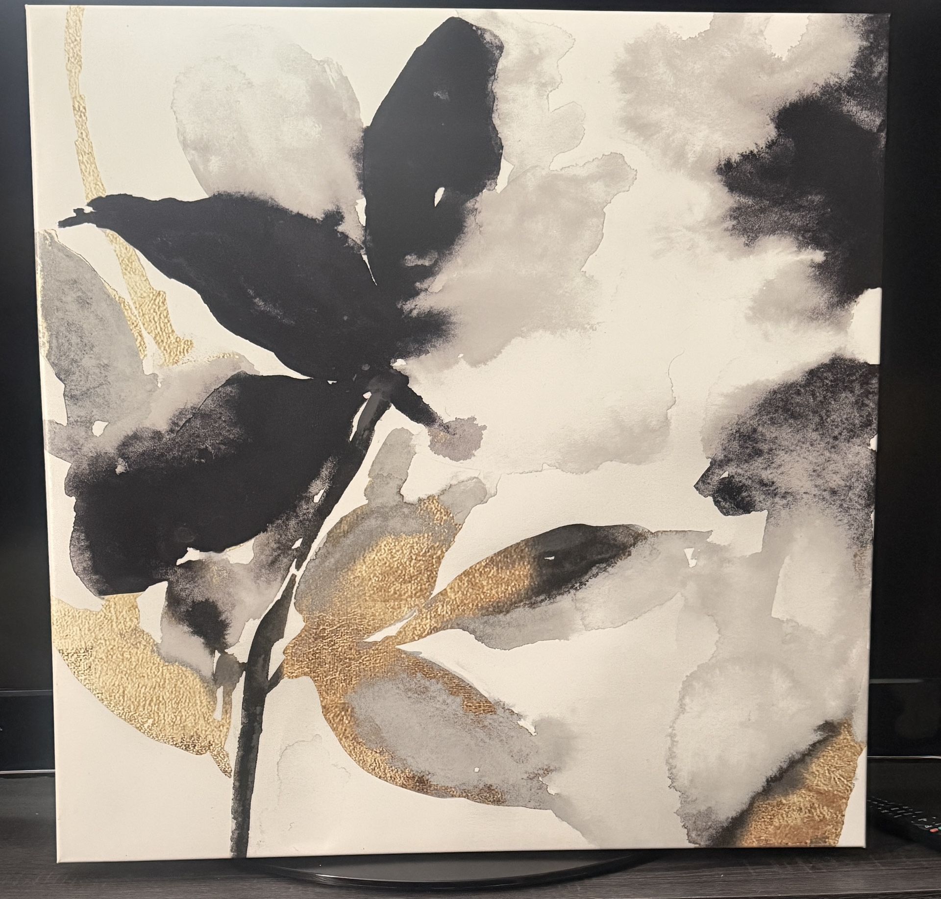 Black petals, gold leaves canvas from Pier one. 30 x 30.