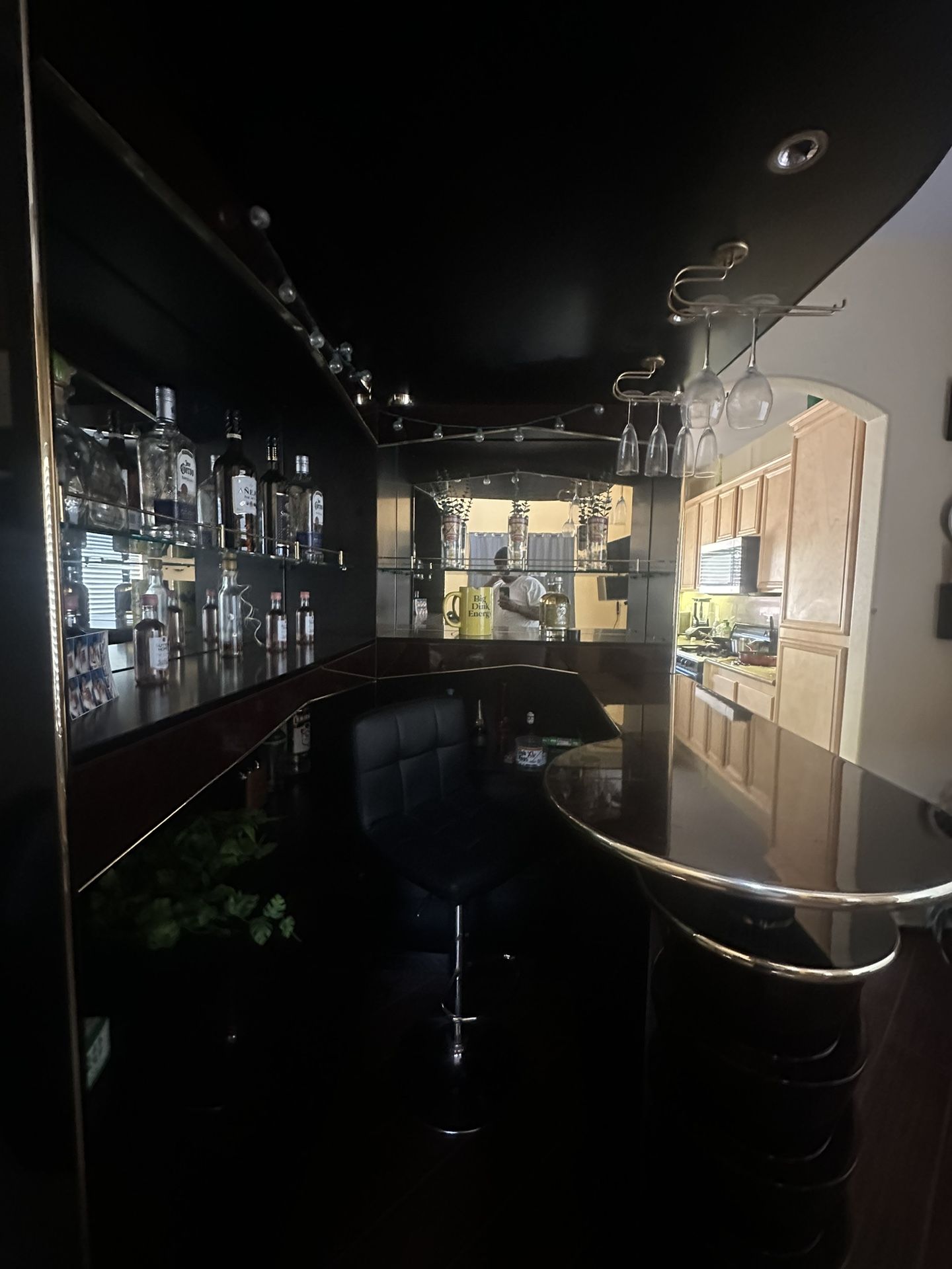 Really good condition Sturdy , no chips , comes with x4 bar stool Comes with glass hanging Asking for 1500