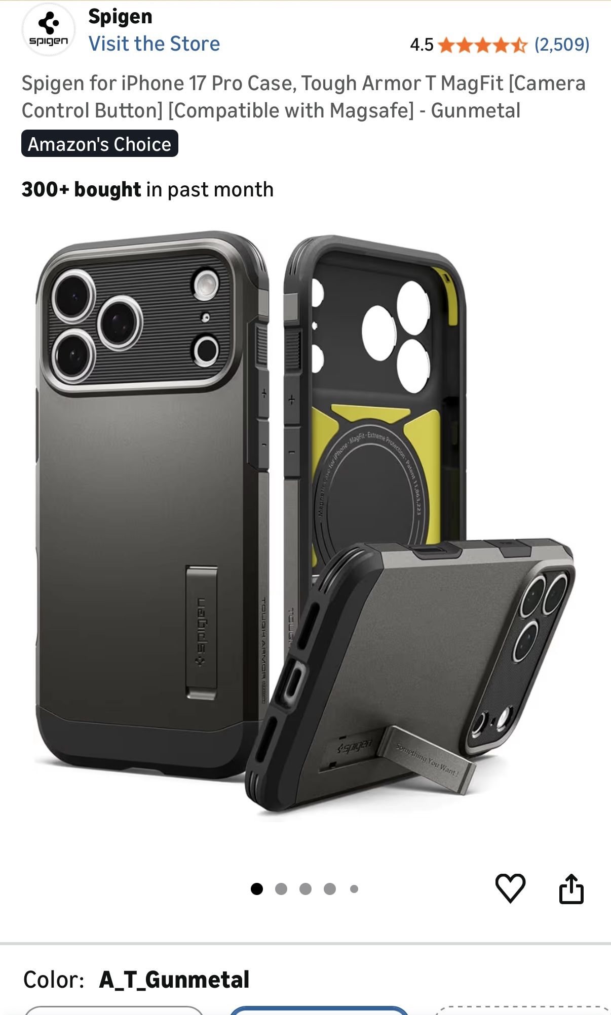 Spigen for iPhone 17 Pro Case, Tough Armor T MagFit [Camera Control Button] [Compatible with Magsafe] - Gunmetal