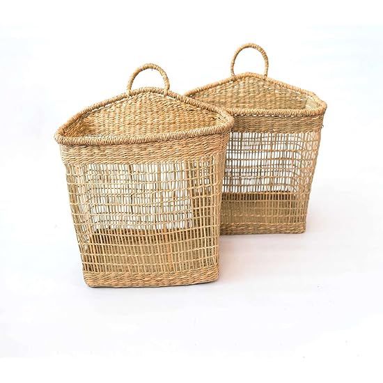 Enhance your home with these elegant natural woven storage baskets. Perfect for organizing and adding a rustic touch to any room. Rectangular wicker baskets are handmade from seagrass by Vietnamese artists, which is a completely safe and long-lasting material. With one handle, you can easily hang this seagrass wicker basket on the wall and store any item that you like such as small plant pots, laundry, toys, etc. Elegant in brown color that will complement any home décor, ideal as kitchen necessities baskets, hand towel baskets, bathroom vanity baskets. Measurements shown on photos Storage Baskets, Wicker Baskets for Laundry, Hanging Planters, Wall Decor for Bathroom, Bedroom, Living Room Shipping available at buyers cost