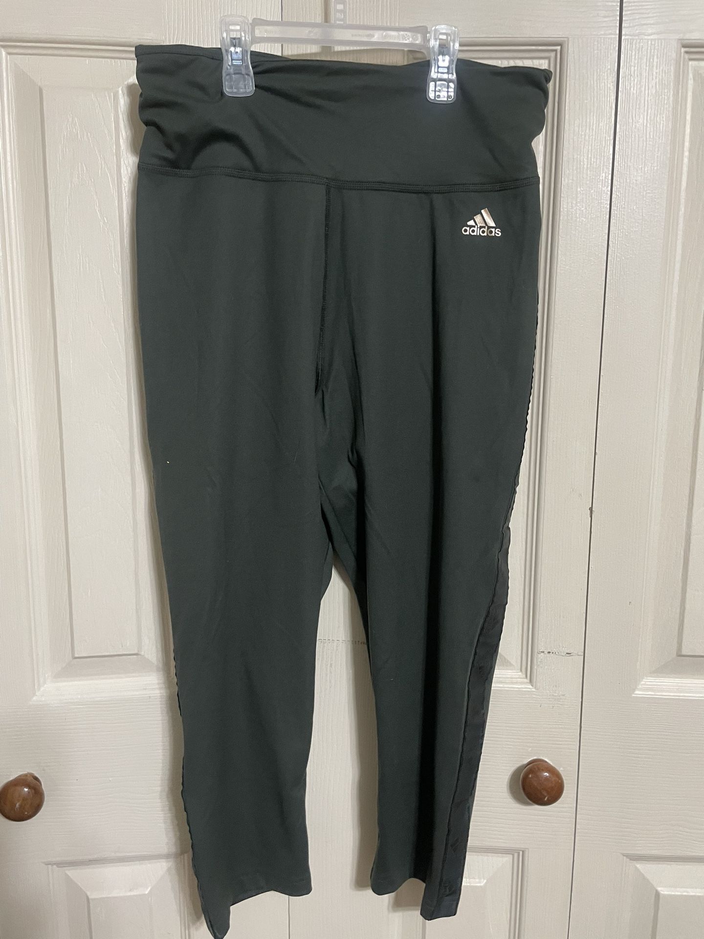 Adidas Zoe Saldana High Rise Cropped Green Tights/ Active Wear Leggings Size Medium