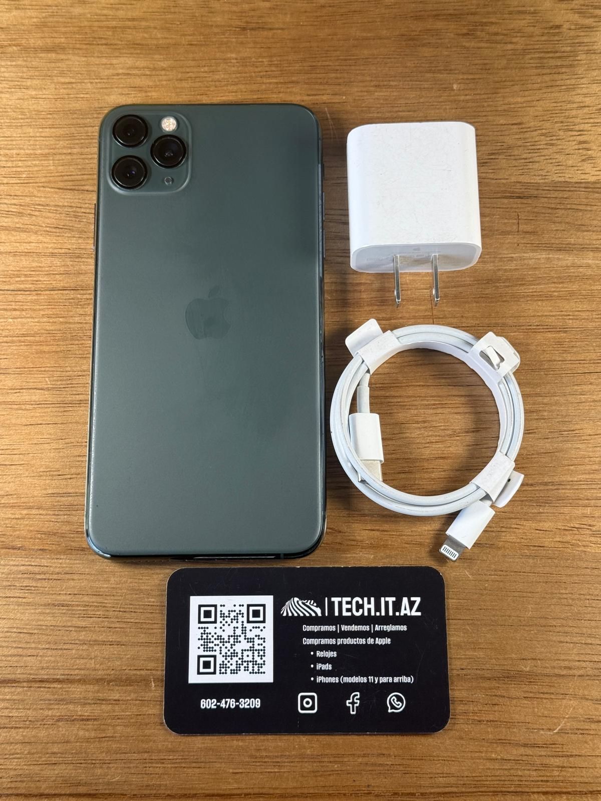 📱 iPhone 11 Pro Max | 64GB | Midnight Green | Unlocked (Any Carrier) Hablo Español | Liberado | Cualquier Compañía ⭐️5 Star Trusted Seller ✅ Clean IMEI ✅ Face ID ✅ True Tone ✅ 14 day warranty 🔋 100% Battery Health 📋Feel free to test your SIM card and phone before buying. 🔌*Add a charger for $10 more. Price is firm 📦Ask us about Wholesale opportunities 📦 Ofrecemos venta por mayoreo 📲 Trade ins are welcome for any carrier status and phone condition! 💰We pay cash for phones 💵 Compramos iPhones *80221