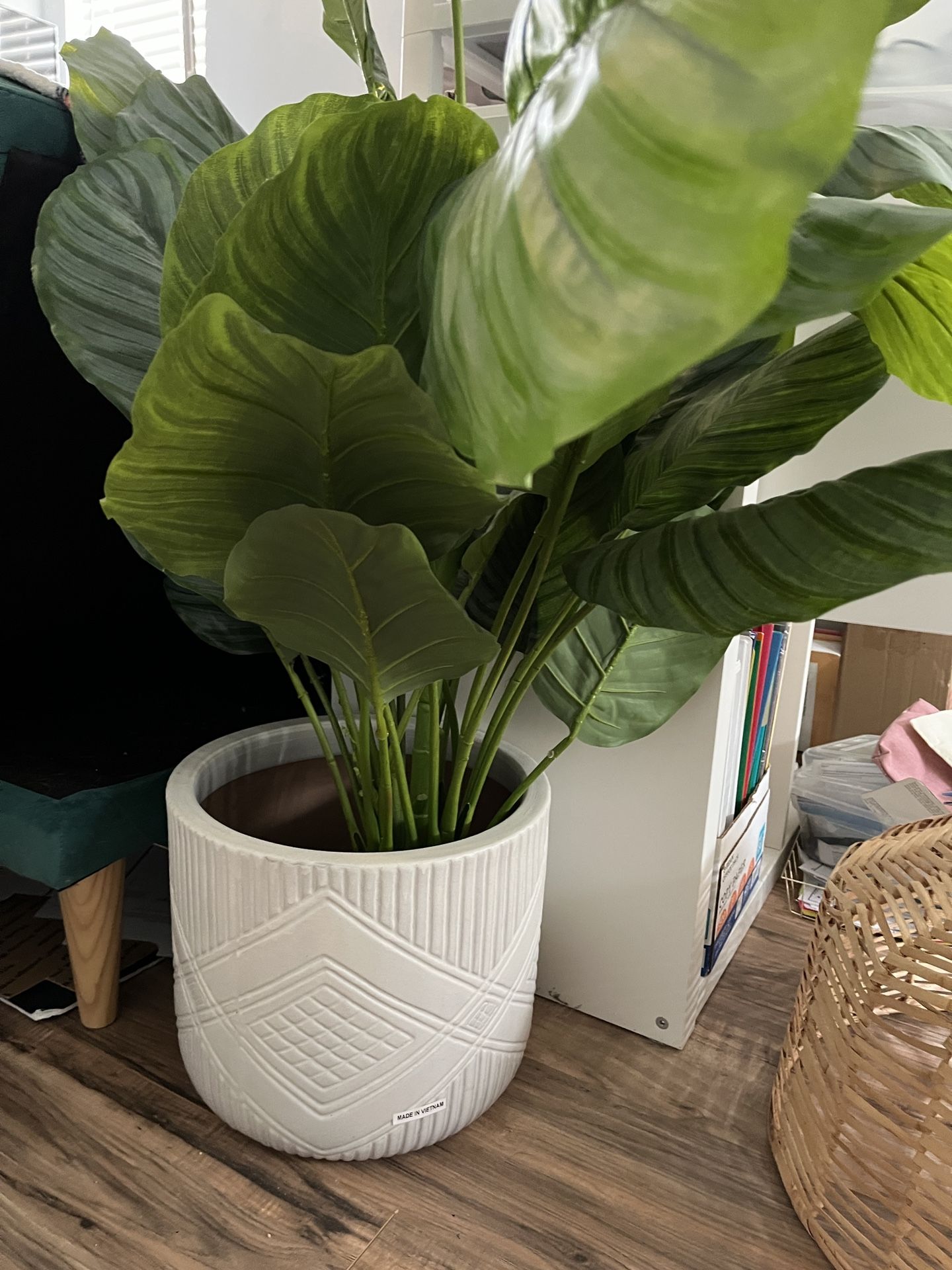 Ceramic Planter Pot With Faux Monstera Fake Plant