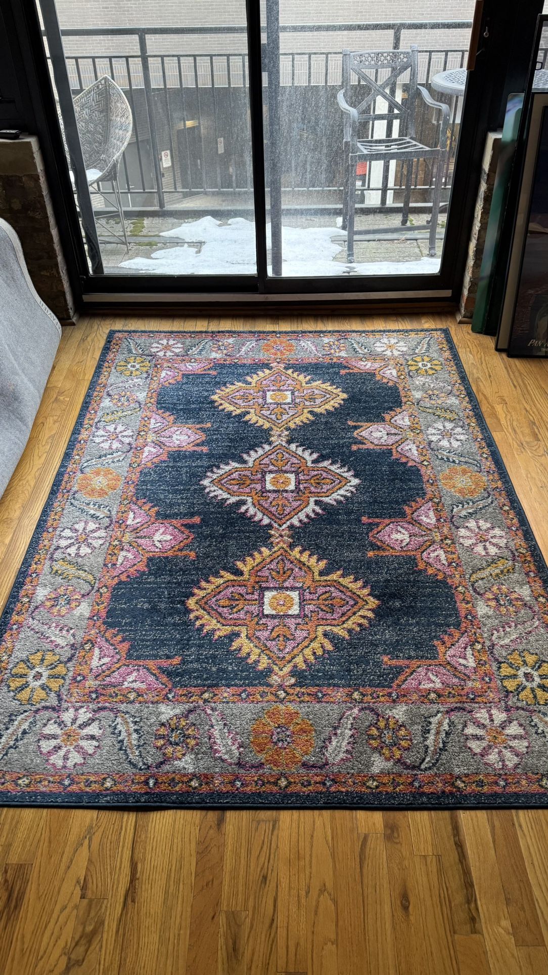 Surya Harput 5’3” x 7’3” area rug Blue with yellow, orange, and pink accent colors MSRP $325