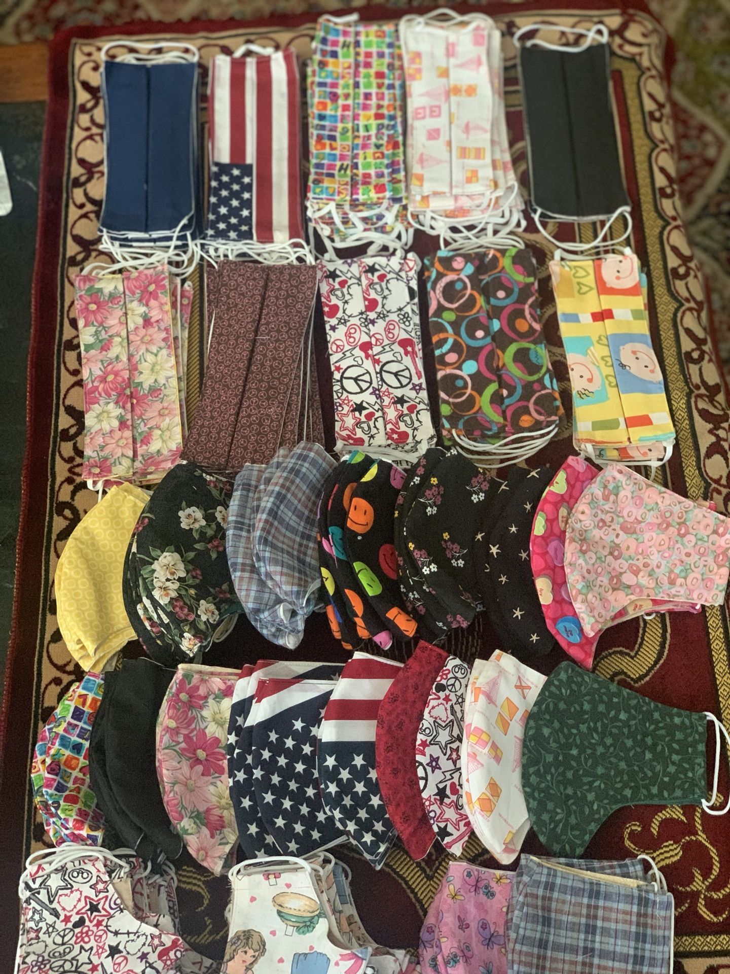 100% cotton fabric Washable Double layers Pockets for filter Round and flat elastic Free delivery locally Or pick up in Brentwood Sells by Bundle as well