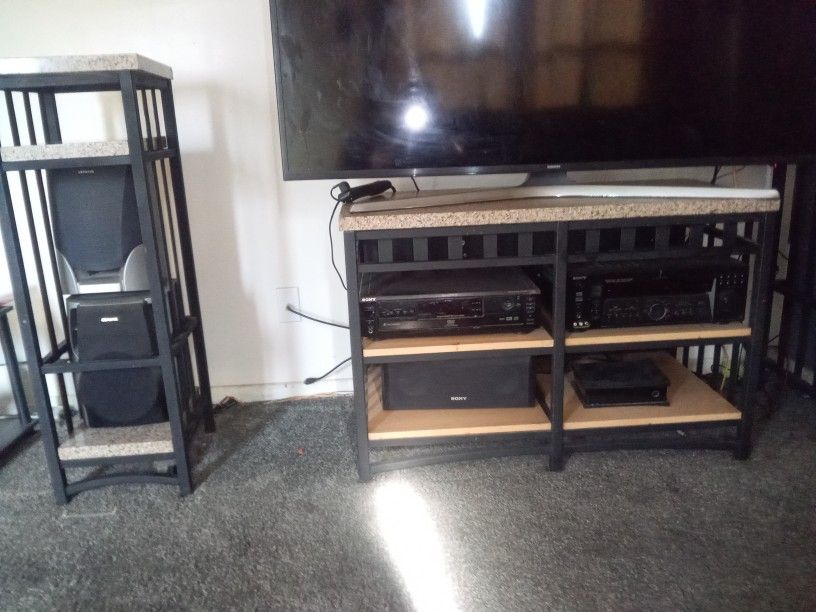 TV And Stereo Stand,Granite Tops And Wroght Iron Stands