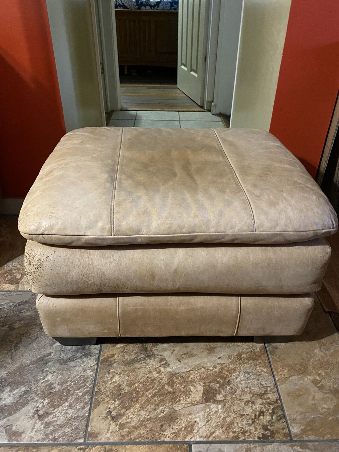 Ottoman Light Brown Leather