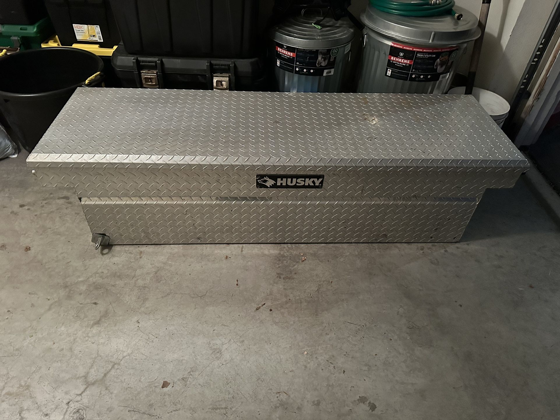 Free husky truck tool box. I dont have the keys to lock it . It does open and shut must pickup
