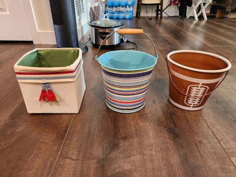 3 Baskets, fabric , metal and plastic, good condition