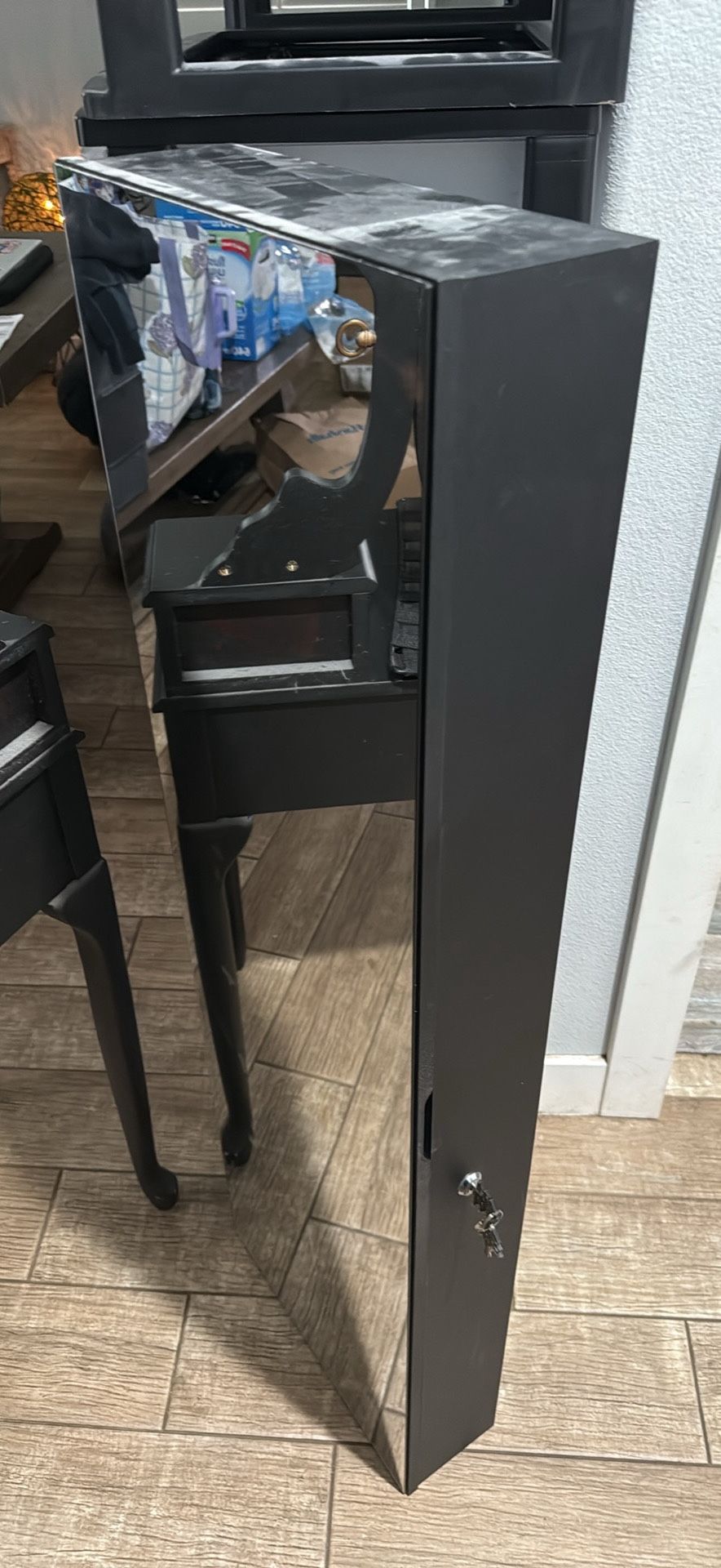 Stores jewelry. 4’x1’ Key for jewelry storage included.