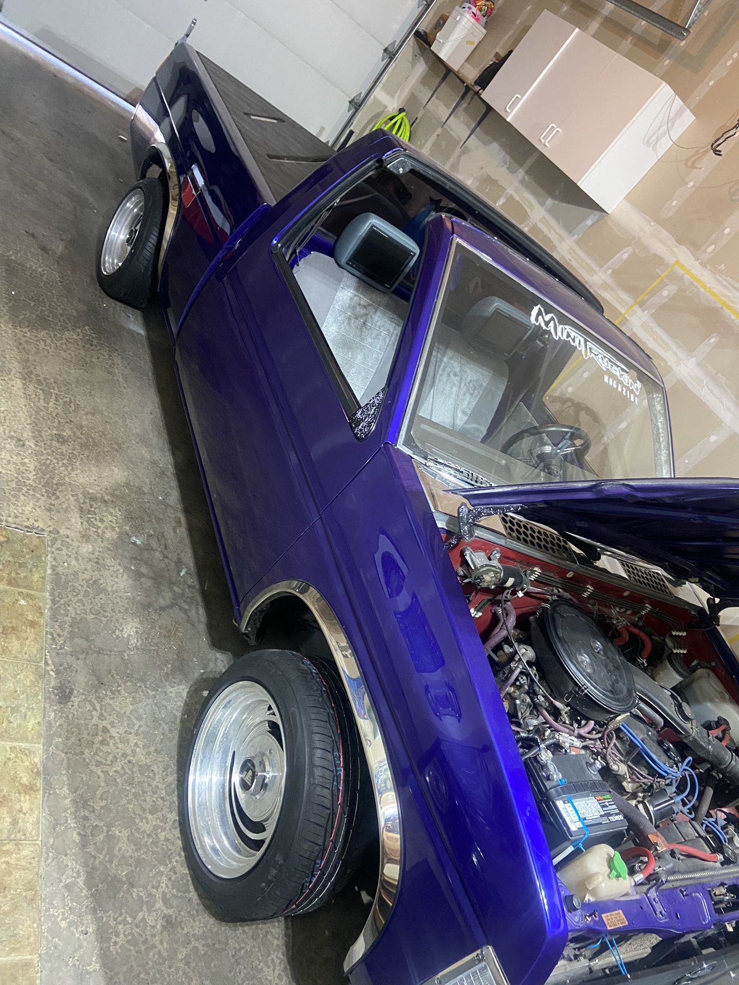 1988 Nissan d21 single ca, manual, 104,000 miles on it. Dump bed needs new battery, cover table with top, head rest screens, shaved door handles, brand new Toyo tires. Collector plates