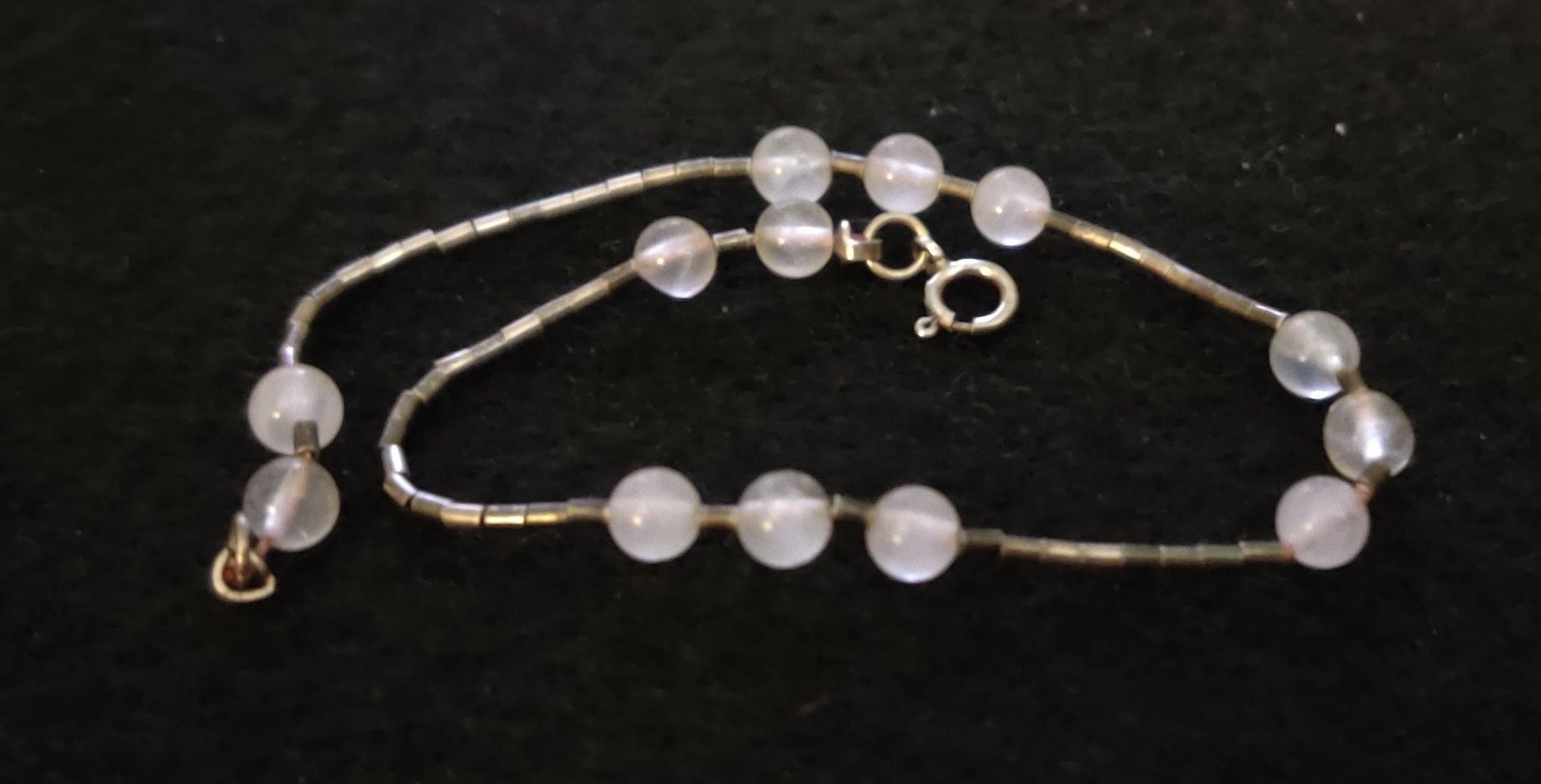 Sterling Silver and white bead bracelet stamped 925 measures 7" long