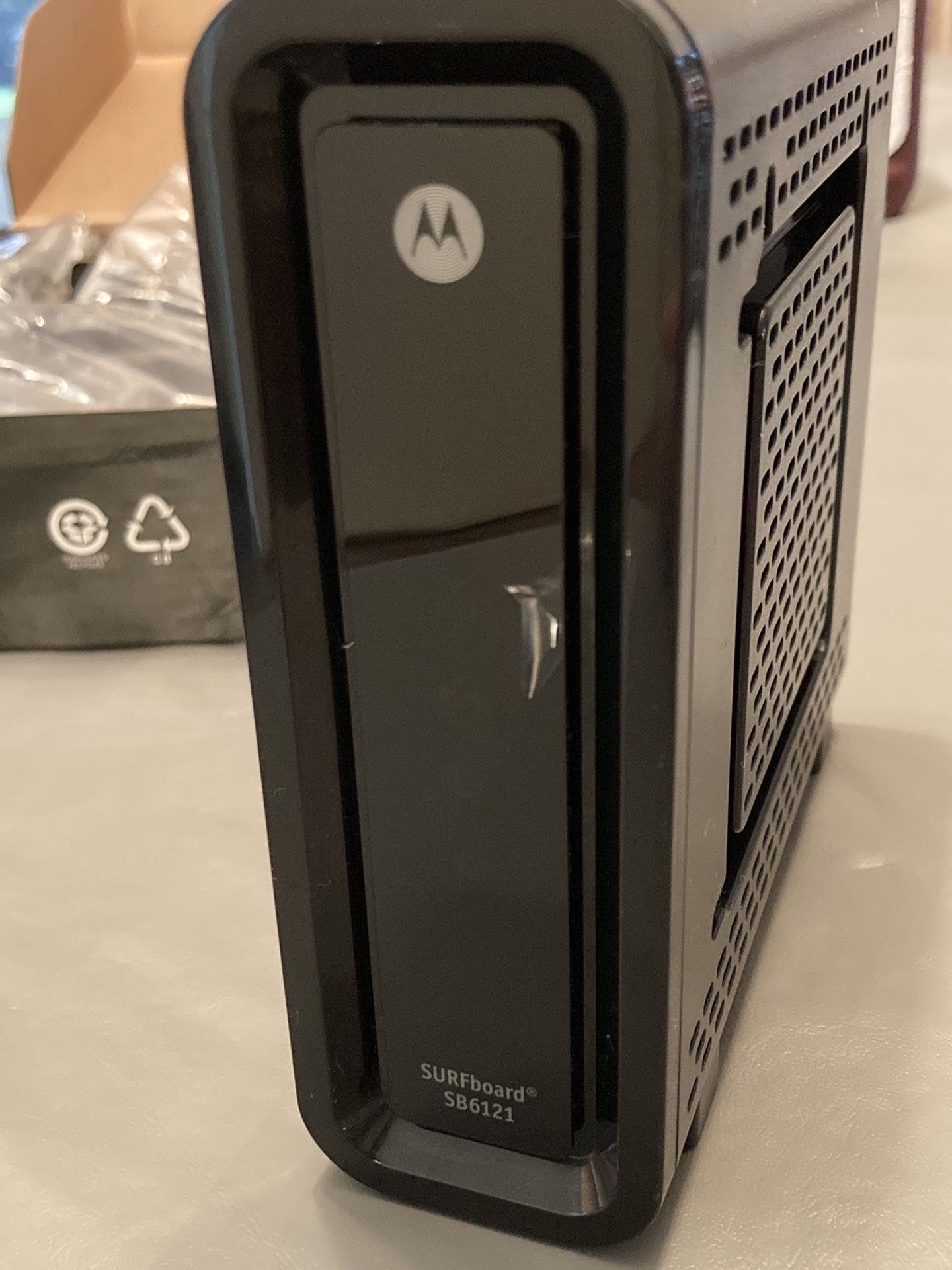 I have for sale is a perfectly functional and like new Motorola Surfboard SB6121 internet cable modem. I used it for a few years and it’s never given me any probs. I just upgraded to another modem that’s a little faster that’s why I’m selling it. I guarantee it works perfect and will for whomever buys this. If you’re renting a modem from your ISP save yourself some money and buy your own. It comes with the power and Ethernet cable. Asking $15.