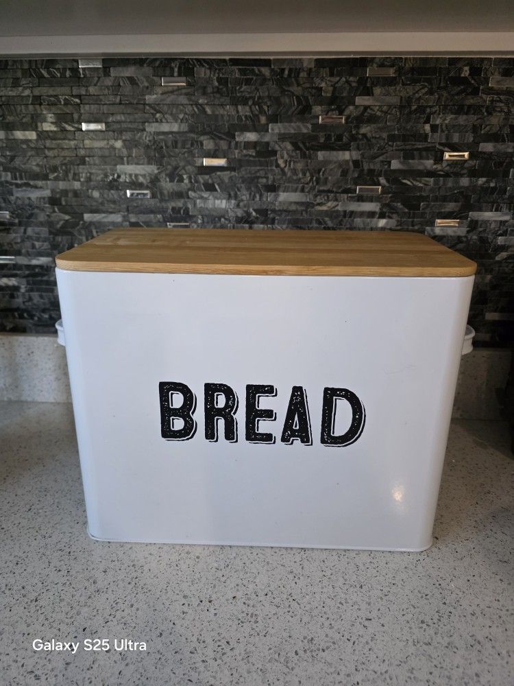 Great condition-Large enough to hold bread, bagels, muffins, or any other goodies you may want to stash out of sight!!
