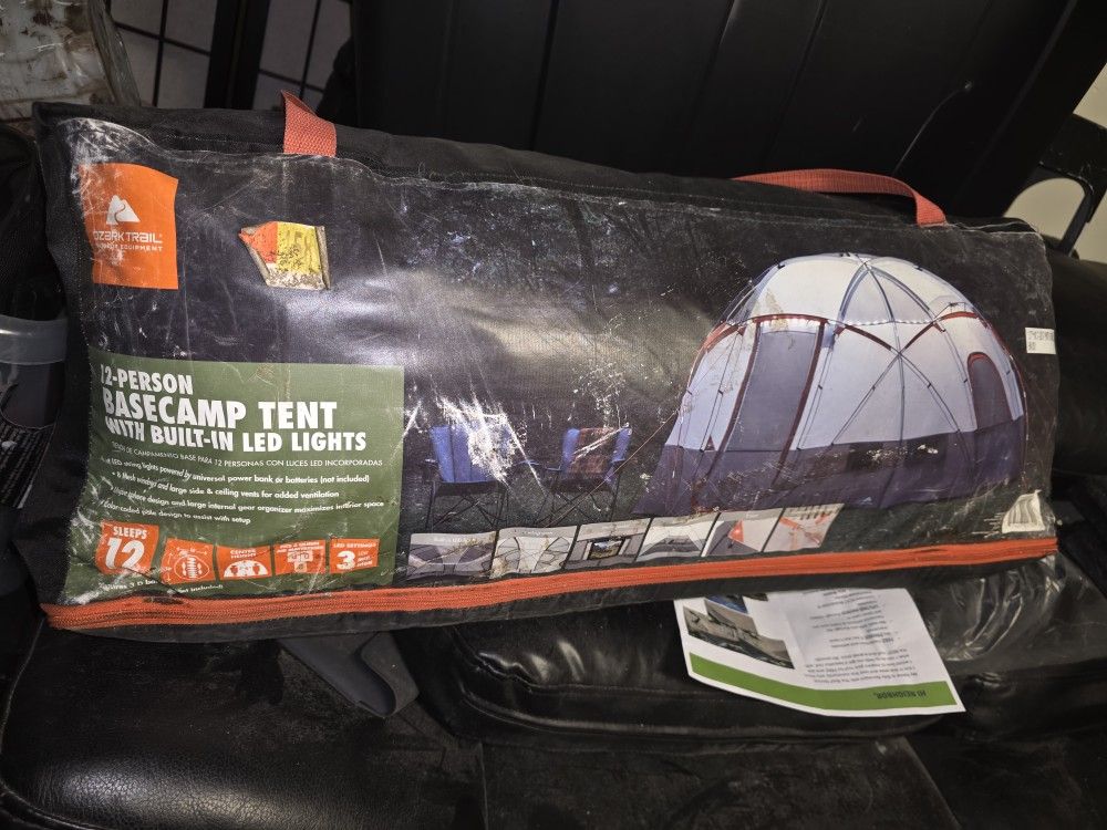 12 ppl capacity. Include solar light inside built in answer cubicle for the bathroom. Spacious. Only used once.