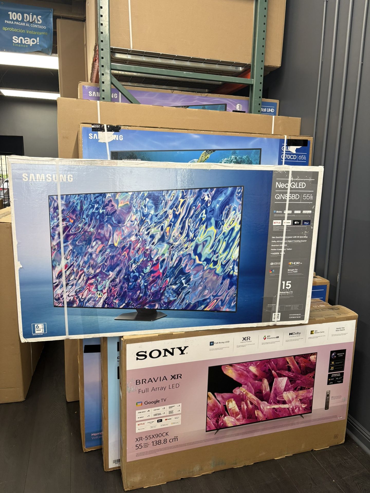 Normal Hours are 12-7 pm closed Tuesday’s 1️⃣ year warranty included on all new TVs! Financing is available with pay off in 90 days no interest! Ask us for a link to an application to get you approved! That is 0️⃣% interest! Extended warranties also available for 2️⃣,3️⃣,or 5️⃣ years.