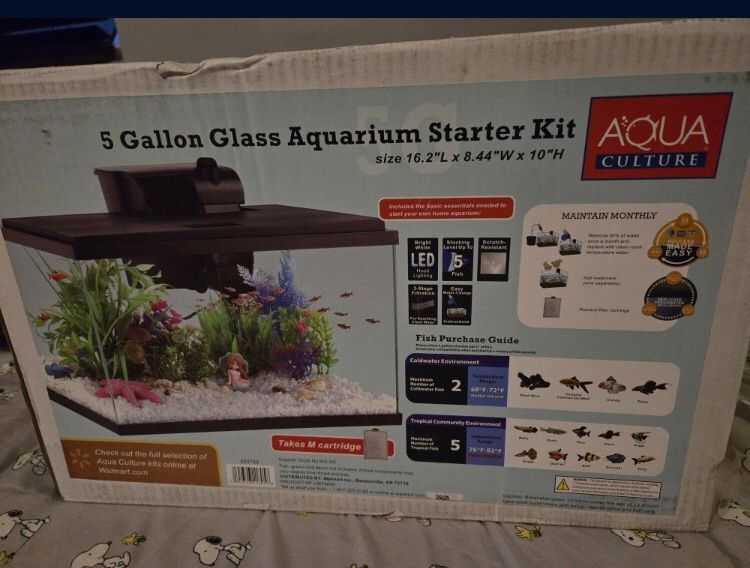 New 5 Gallon Glass Aquarium Starter Kit