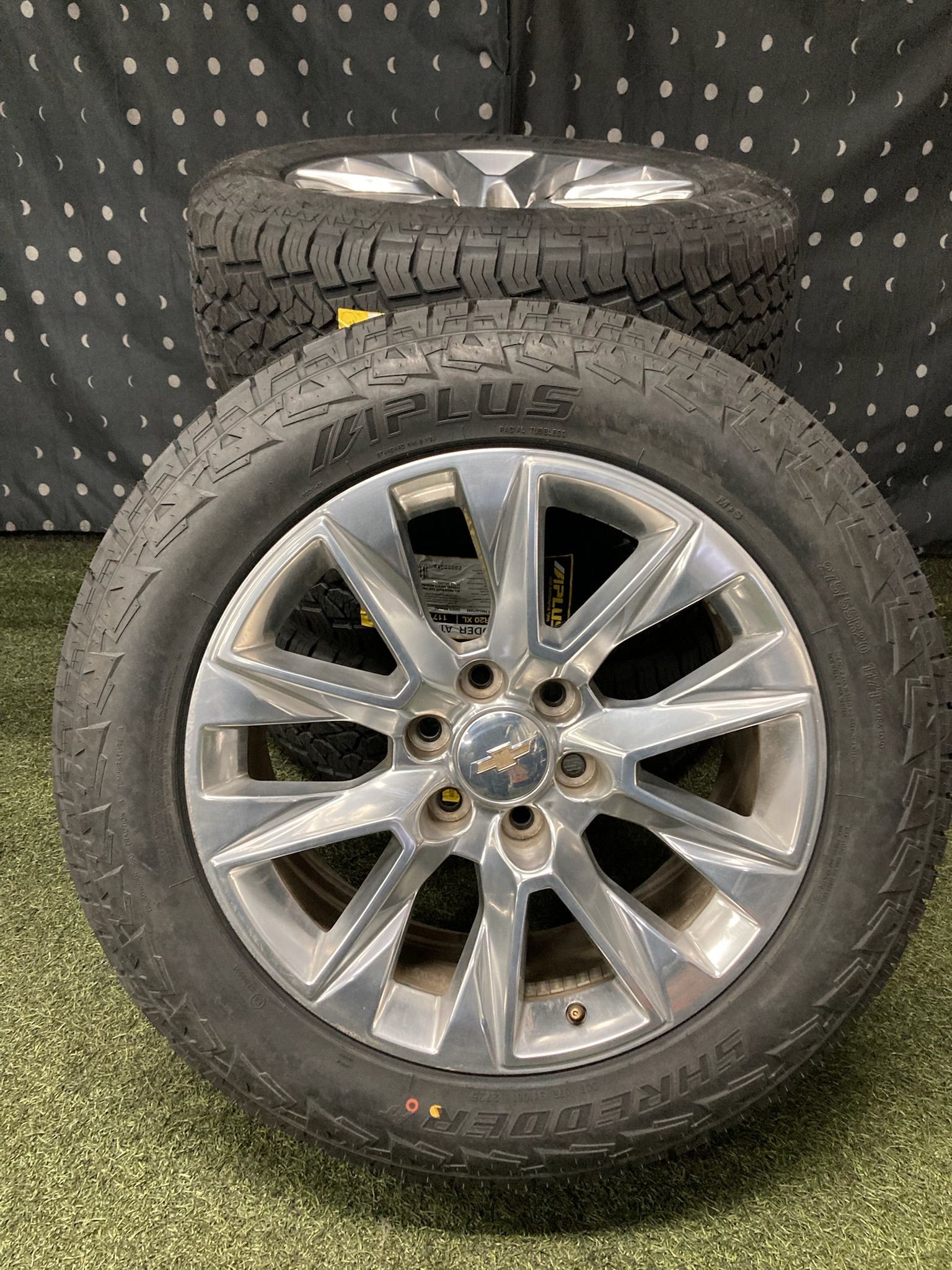 CALL / TEXT 623-241-0120 , Ask for JENNY / pregunta por JENNY HABLO ESPANOL Slight scratches on wheels Aplus Shredder AT 100% Tread 275/55R20 DOT - Date of tires is 2625 Bolt pattern is 6x139.7 Fits Chevy Silverado, Chevy Tahoe, Chevy Suburban, GMC Sierra, GMC Yukon, Cadillac Escalade Fits years 2023 and newer Chevy Colorado and GMC Canyon $1249 out the door cash discount price or $1289 installed cash discount price (Installation includes balance and transfer of tire pressure sensors *Lug Nuts, other center caps and new TPMS are sold separately but you are more than welcome to use your original lug nuts, center caps that are included with the set and your original TPMS Financing available (Easy Pay, Snap, Progressive, American First Finance, Acima, Koalafi, Kafene) -Tires can be changed for any size or brand (price may vary) -Level kits and Lift Kits available -Rims alone -no tires are also available -First come , first serve -These can be placed on hold with a deposit CALL / TEXT 623-241-0120 , Ask for JENNY / pregunta por JENNY HABLO ESPANOL