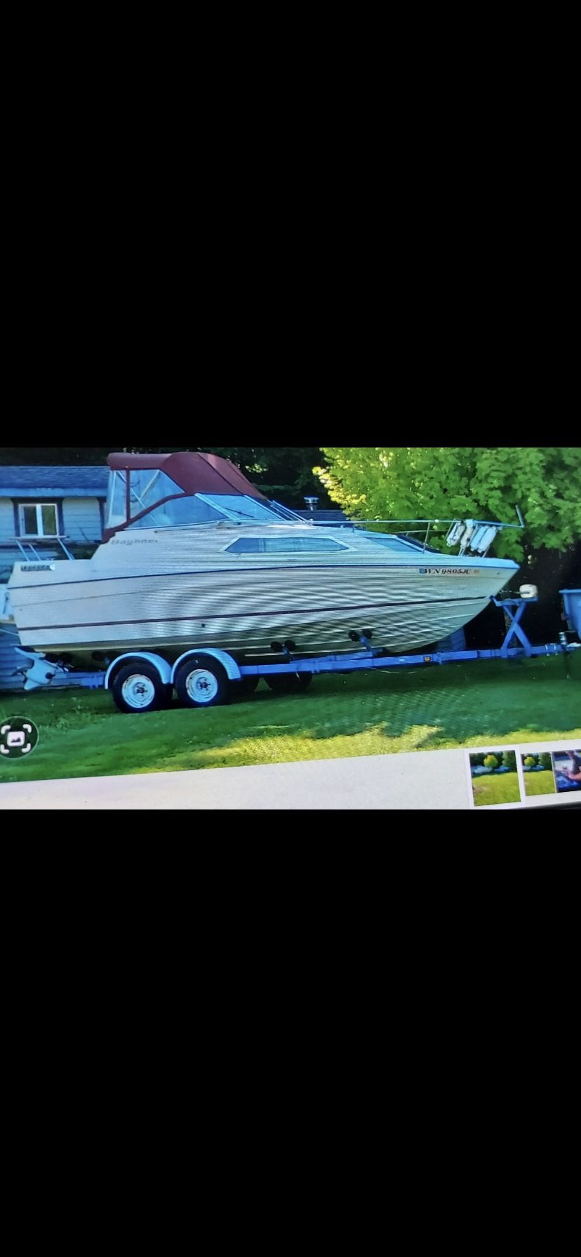 1982 24ft Bayliner Monterey, runs good, new top, sleeping quarters and kitchen. 350 engine and kicker. $9000.00 obo