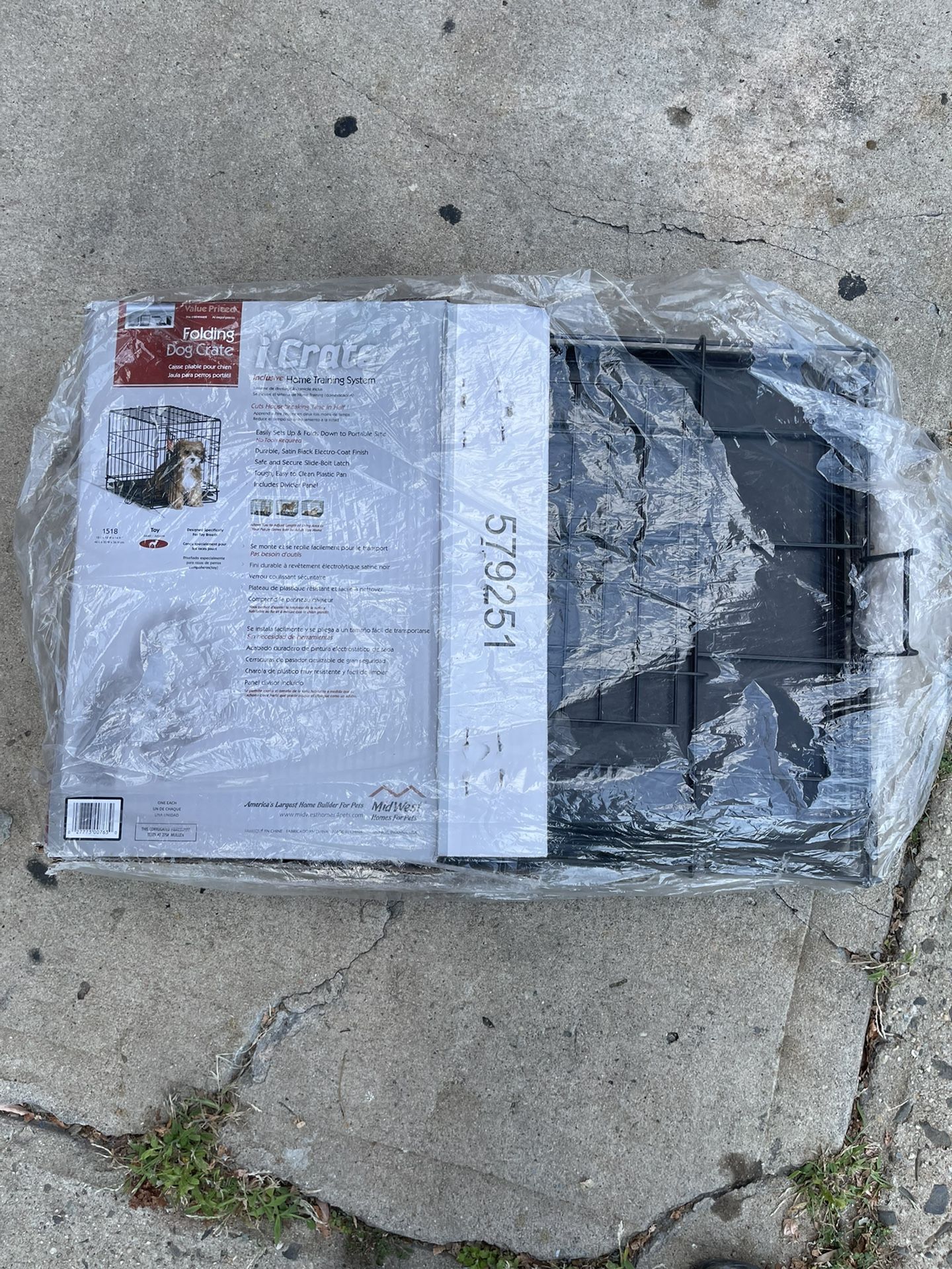 I have two diff size dog crates, both are new One size is for a Toy size L 18x W 12 x H14 $25 Other size is small size L 18x W 24x H 21 $35 Buy both for 50$