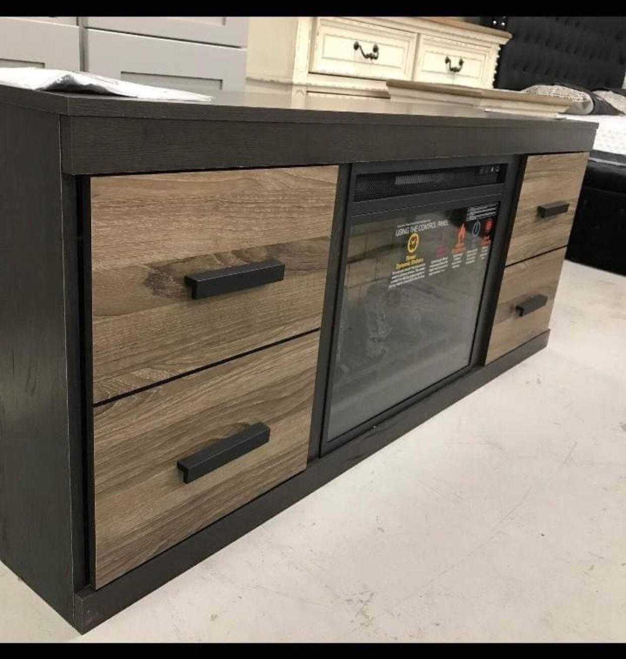 Harlinton Warm Gray Tv Stand Friplace Option🔥 New Brand 🤩 Showroom Available 🏠 Financing ☑️
