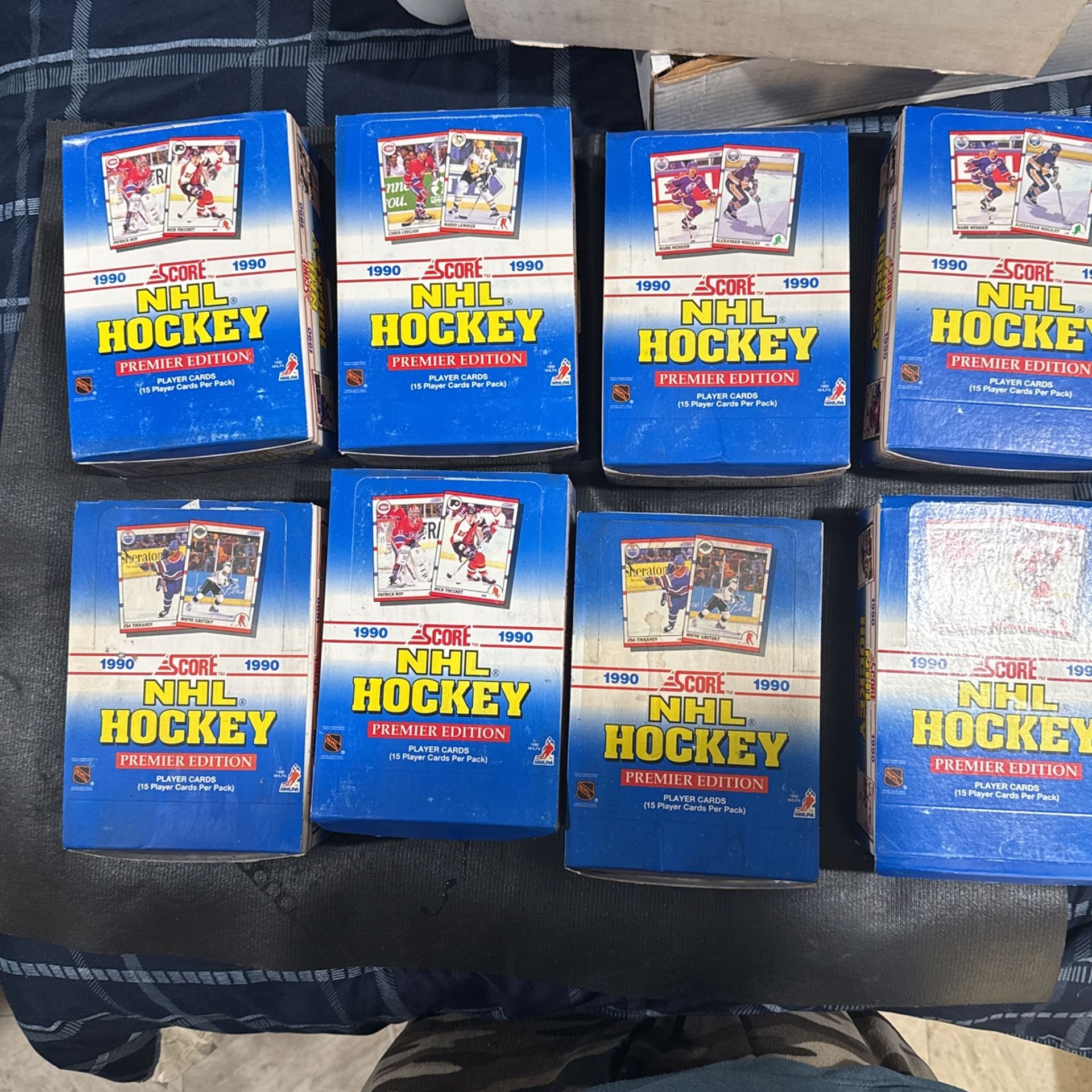 Selling eight boxes of 1990 Score hockey cards for $12.50 each if you take all for 100$ I will throw a free hockey 1992 stadium club hockey topps box with 36 pack. Firm on price everything for 100$