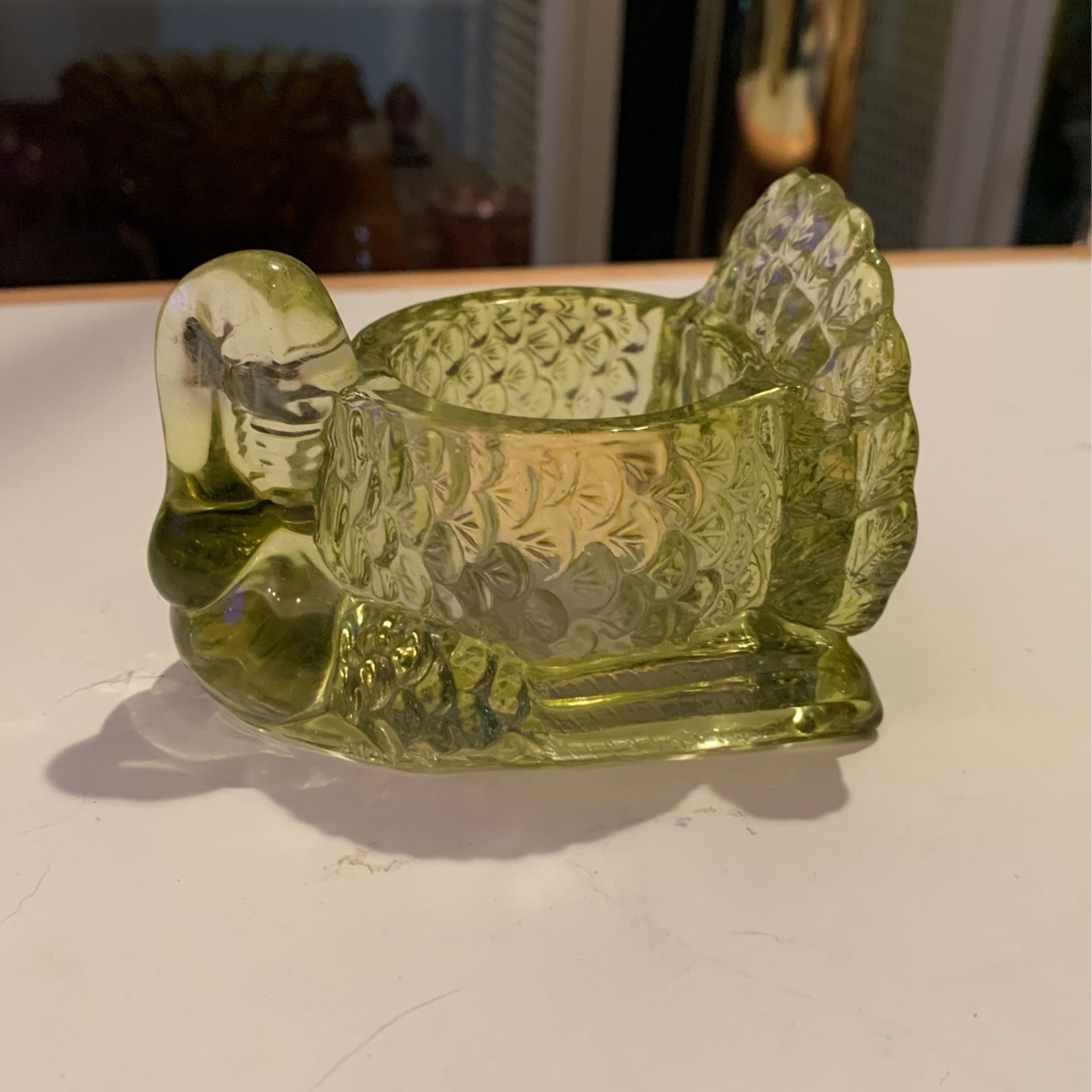 Vintage Green Pressed Glass Turkey Candle Votive Holder