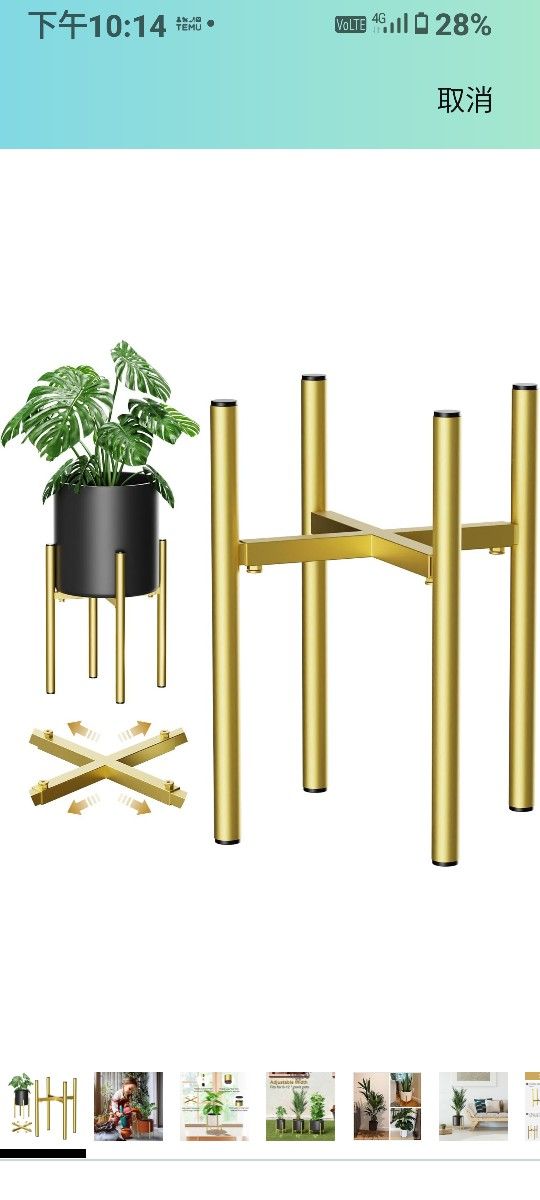 Metal Plant Stands for Indoor Plants Adjustable for 8 9 10 11 12 inches Planter Mid Century Stable Stylish Corner Plant Stand for Outdoor, Gold 1Pack,