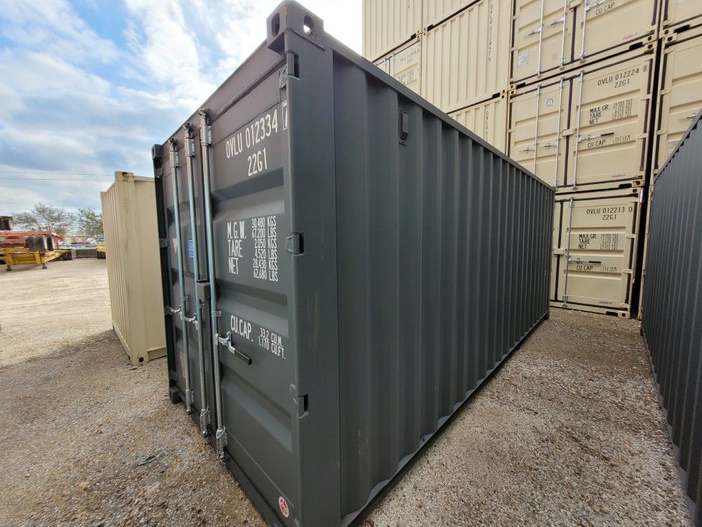 Several newly manufactured 20ft one trip shipping containers are available for sale. Each unit is in One Trip A Grade condition with one shipment of goods in it since the manufacture date. Roof, seals, doors and floors are in smooth working condition as expected of a new unit. Measurements are 20ft length by 8ft width by 8 1/2 foot height on the exterior. Interior measurements are 19'5" length by 7'9" width by 7'10" height. Units come standard with a lockbox on the door to prevent lock cutting. Forklift pockets are located on both undercarriage sides for easy moving after our initial delivery. Wood composite floors are marine grade treated planks. Units are for direct to property delivery only. There is no container showroom to visit. Self-pickup loading is unavailable at the current storage facility. Tiltbed delivery fee is NOT included in the listing price and available for an additional fee based on your ZIP CODE. **NOTE: Delivery extends 100 miles from Tampa only. The container invoice is billed AFTER successful delivery and your inspection of each new unit purchased. Message your zip code here for an informational quote or any other details and questions you may have.π