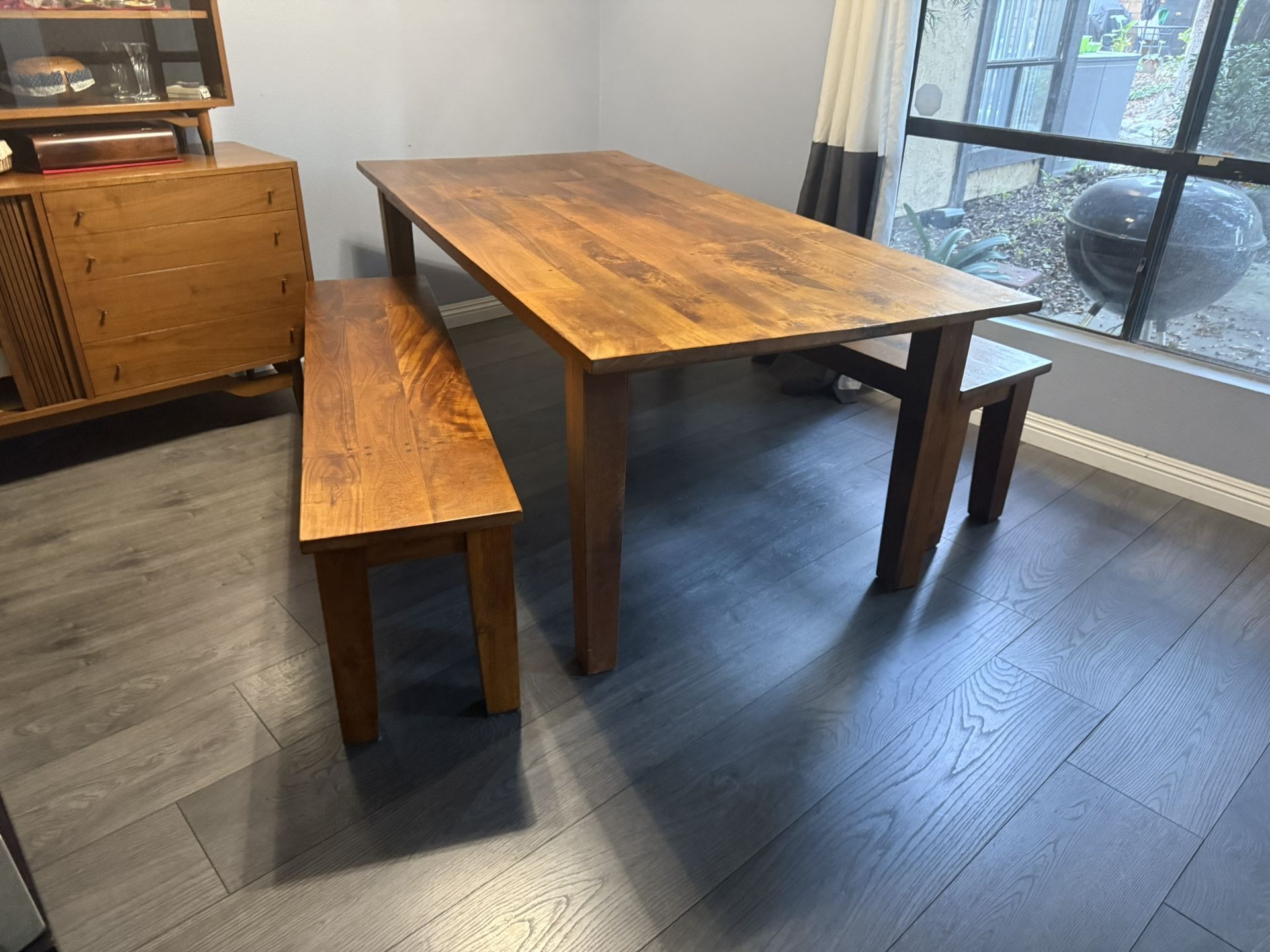 This is a solid wood dining room table and two benches which seats six. Purchased from Crate & Barrel a few years ago. Asking $1500 for the set. Here’s a link to the table on Crate & Barrel. https://offerup.co/faYXKzQFnY?$deeplink_path=/redirect/