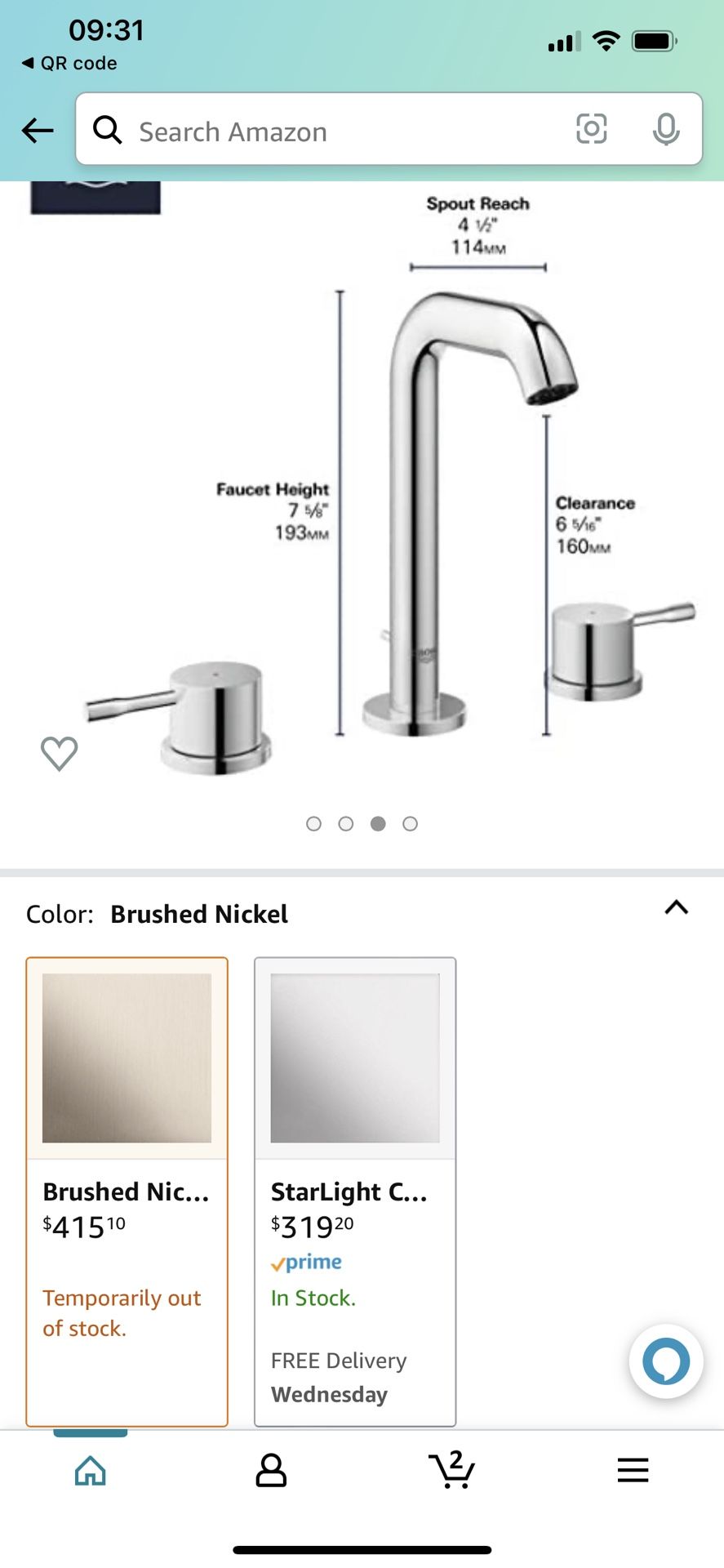 New faucet 300ea 5-7/8 in. Faucet height 5-1/4 in. Spout reach 5-1/8 in. Aerator height Solid brass body Metal lever handles
