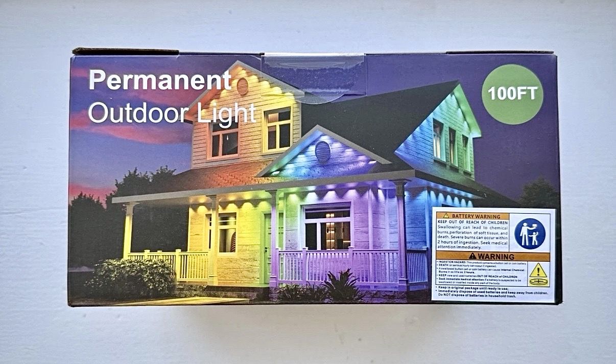 BRAND NEW NEVER USED. Length: 100FT Colors: RGB / Multicolor (16M colors) Modes: 48 scene modes Control: Bluetooth app (Surplife) + remote Wi-Fi: Not required Use: Outdoor (eaves, roofline, patio) Power: Corded electric IP67 waterproof, built for year-round outdoor use Works in -4°F to 140°F (control box should stay dry) Install: 3M adhesive or screws Includes: 100FT light set, control box, remote, mounting hardware