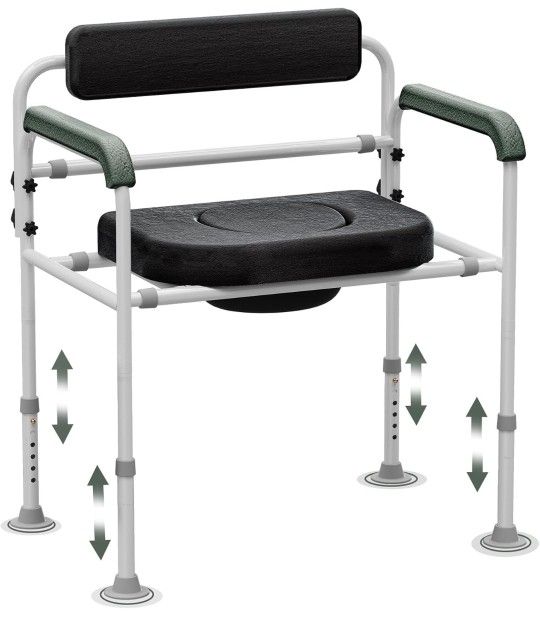 Adjustable Medical Bedside Commode Chair with Padded Backrest, Height Adjustable, Drop Arm Support Brand: SeatYuPro Material: Metal Color: Black Manufacturer: Zerin