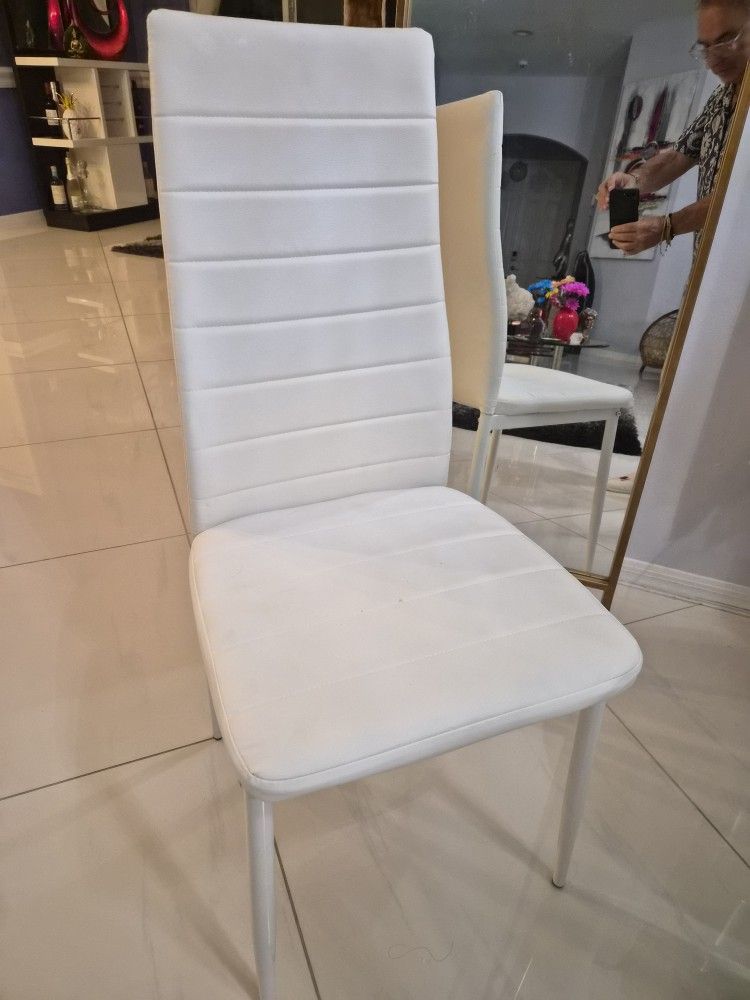 Brand new (not used) white dinner chairs. 4 dinner chairs by box, 6 boxes. Available for pickup by box, price 150usd/box (ie 35 usd/chair). 1 box opened with 1 dinner chair assembled.