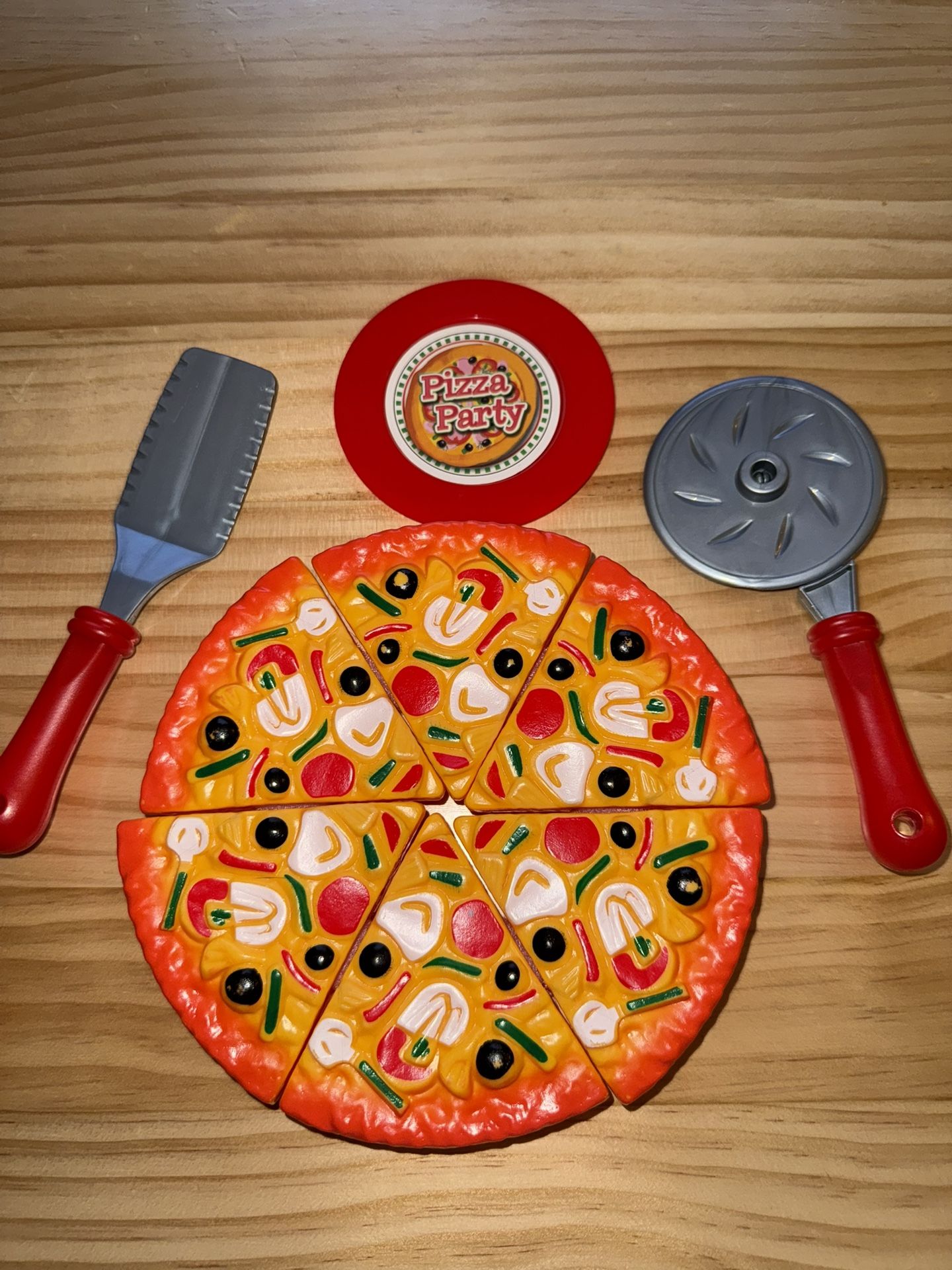 Pizza Party - Velcro pizza, plate, pizza cutter, and serving utensil. Bought from TJ Maxx, child played with it once and lost interest.