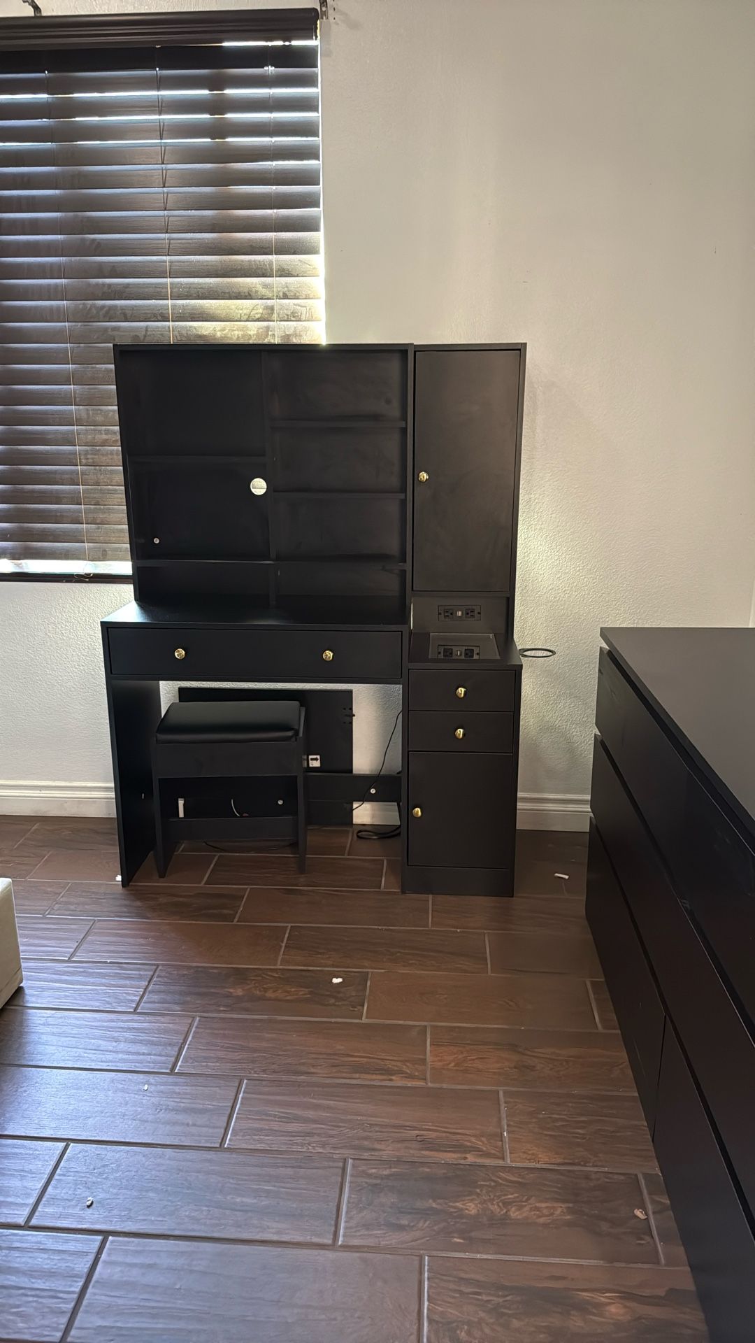 Black vanity moving out sale. Mirror came off but the part it right here to out back on. Lights already installed with mirror and outlets