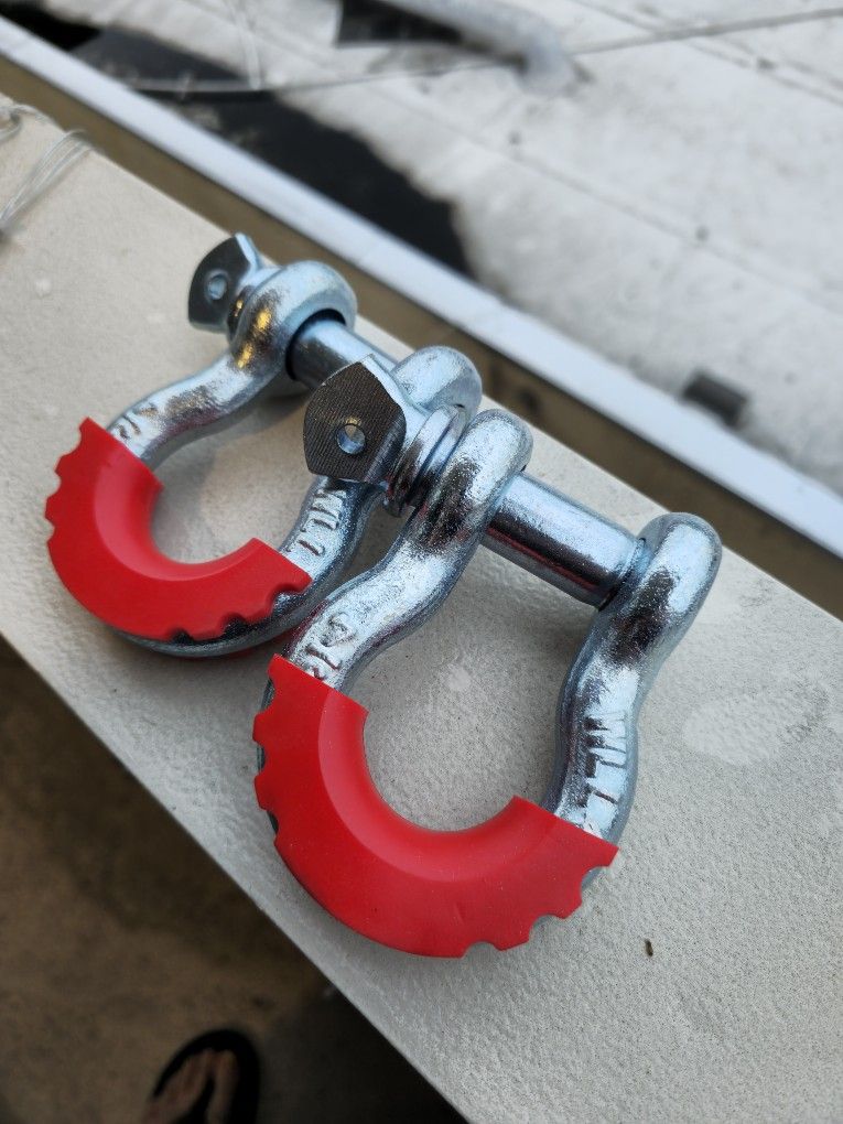Pair of Brand New D-Ring Shackles with red guards. 3/4" Clevis Shackle and 7/8" pin rod with a 41k breaking tow. CASH ONLY!
