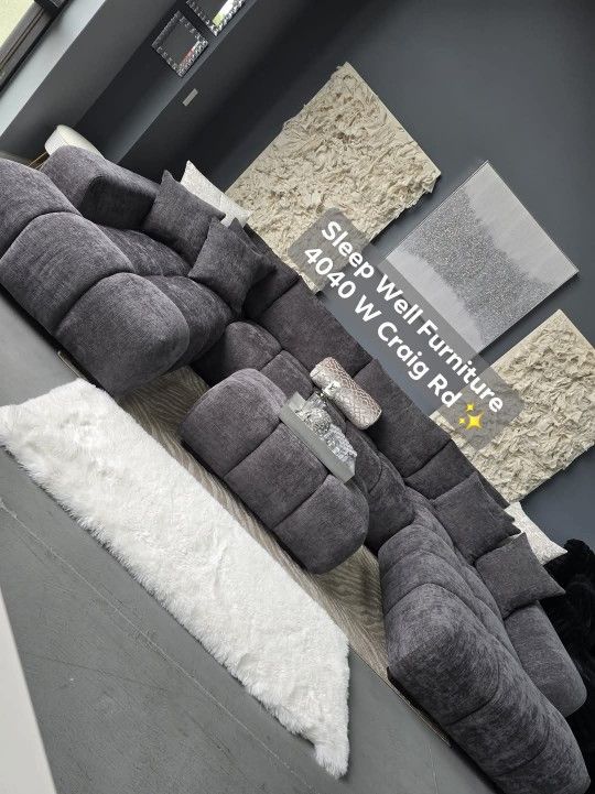 Modern style double chaise sectional sofa with pocket coils for extra comfort! 👉👉$1799👉NOW! (Originally $2500) 🙋♂️👉SLEEP WELL FURNITURE 4040 W CRAIG RD LAS VEGAS Open 10-7pm Hablamos Español 👉We offer Financing💲 Take home it Home 👉$50 DOWN No credit required, Zero interest up to 120 days Select from Koalofi, Acima, American First, Progressive finance. Furniture Sectional Sofa Queen King Mattress Bedroom Bunk beds Dining table sets
