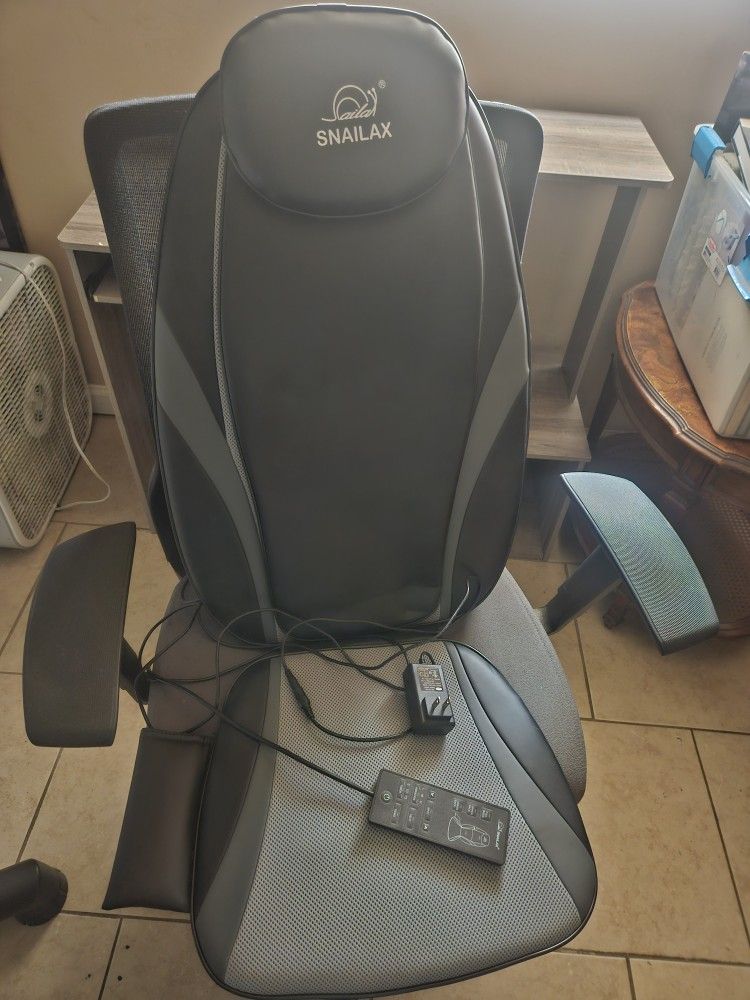 Office chairs not included. Works great. Only used a couple times. Heat and multiple speed and pressure settings. Great for remote office desk job